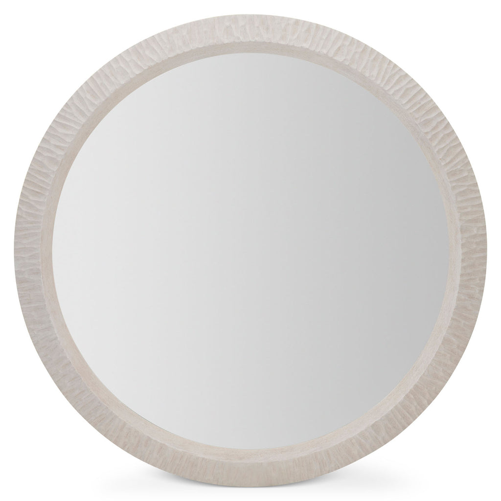 The chiseled cast resin frame on the Solaria mirror offers a modern and organic look. Surrounding non-beveled mirrored glass, the circular frame is a chic and artistic design.
