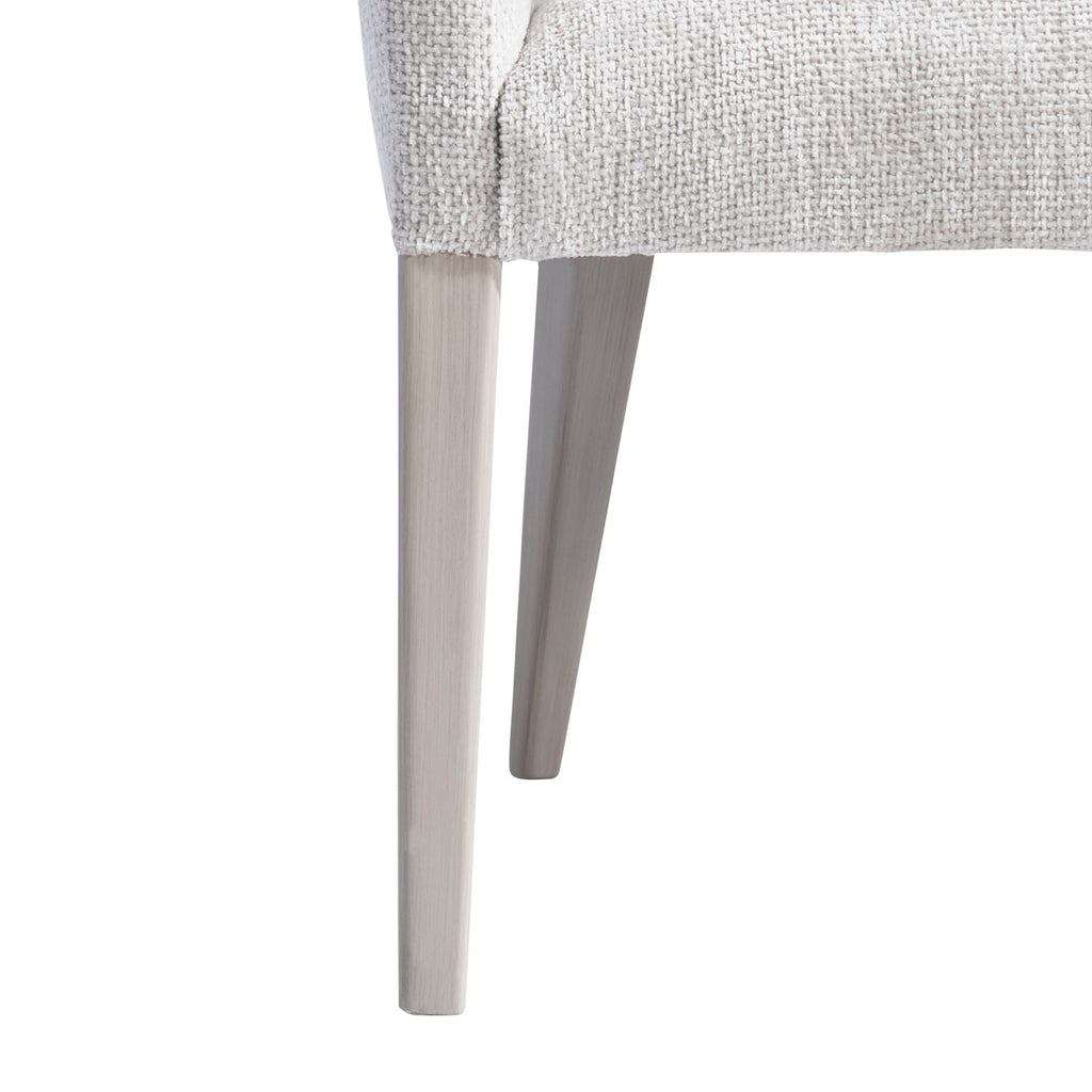 The Stratum arm chair takes straight lines and slight curves and gives them a sleek sophistication. A softly curved back is complemented by arms that curve outward. Exposed wooden legs, finished in Mist, support the fully upholstered seat.