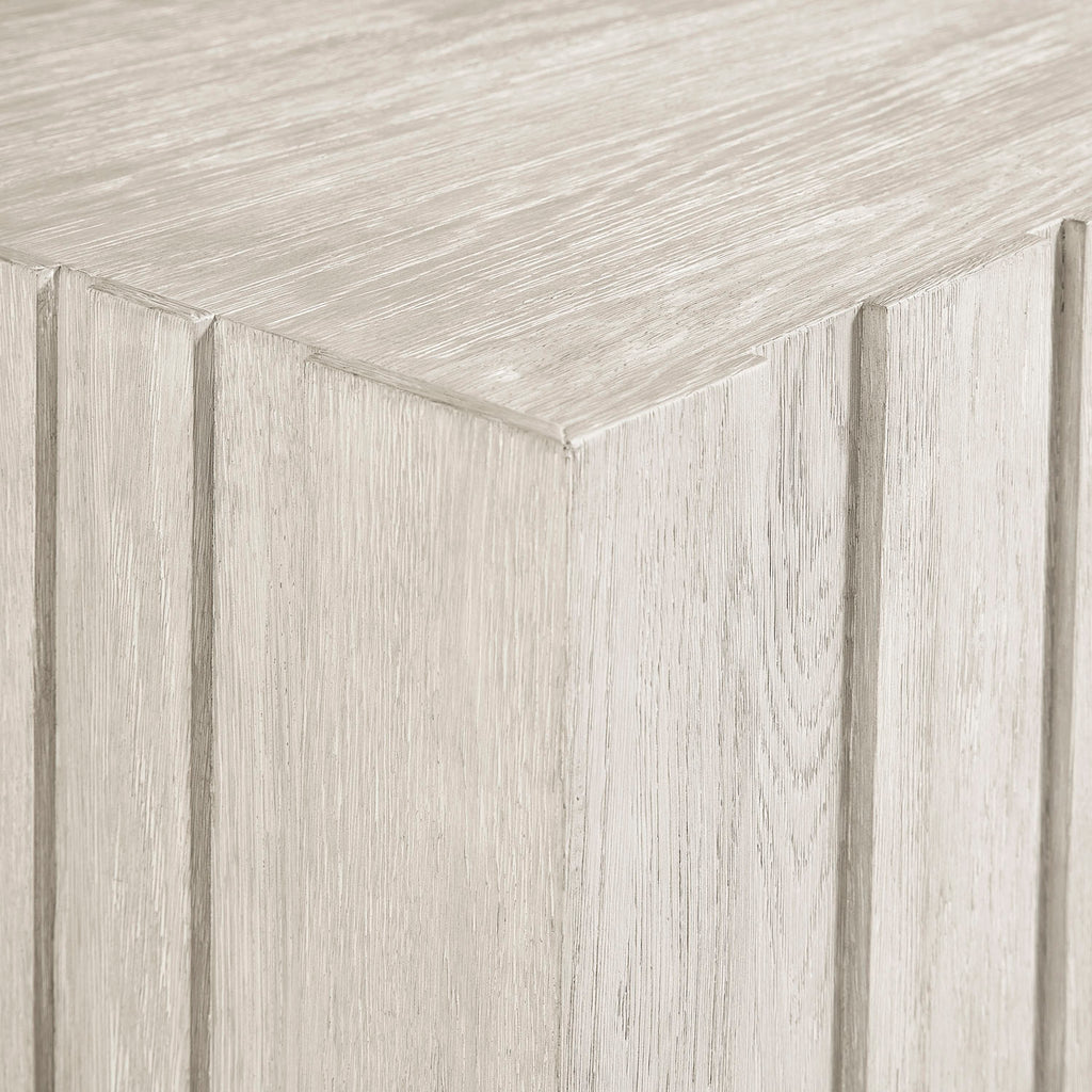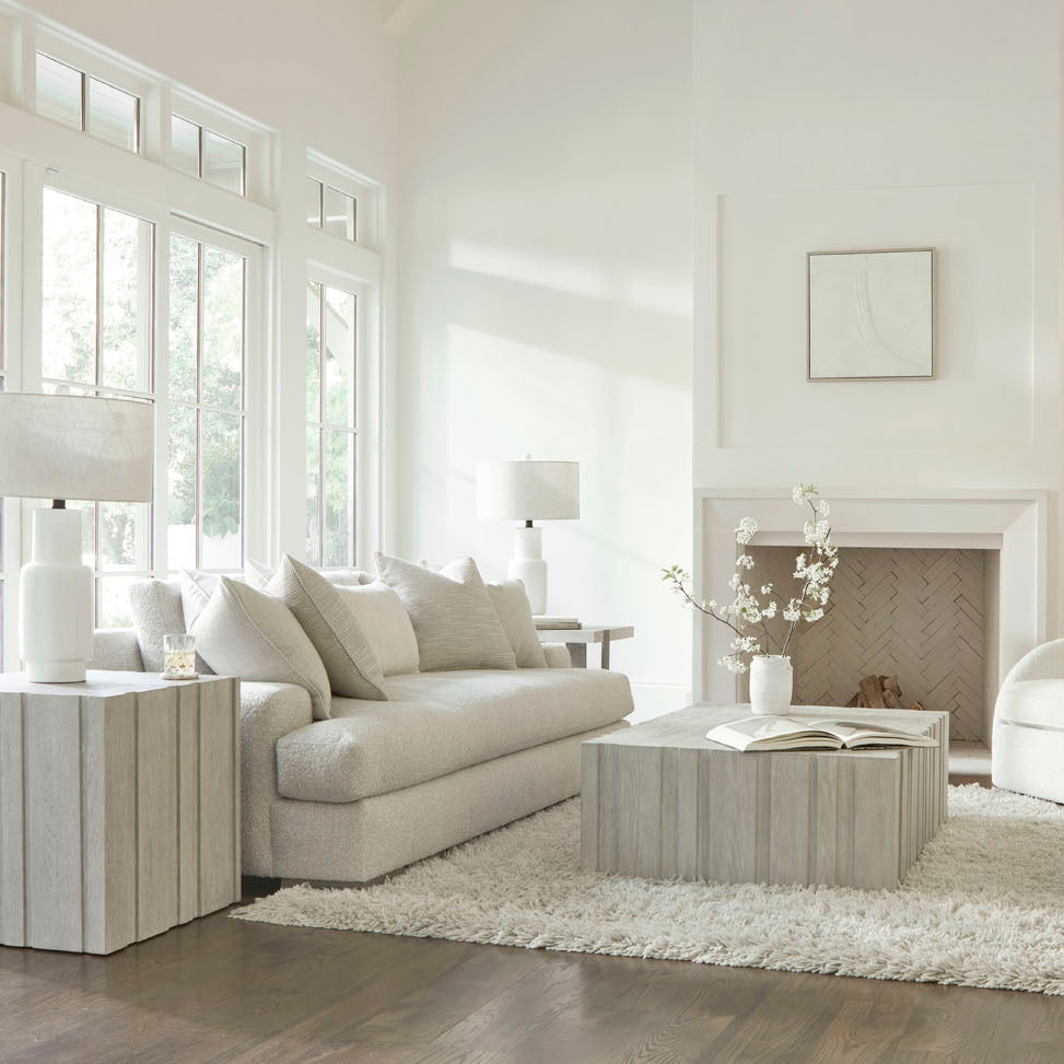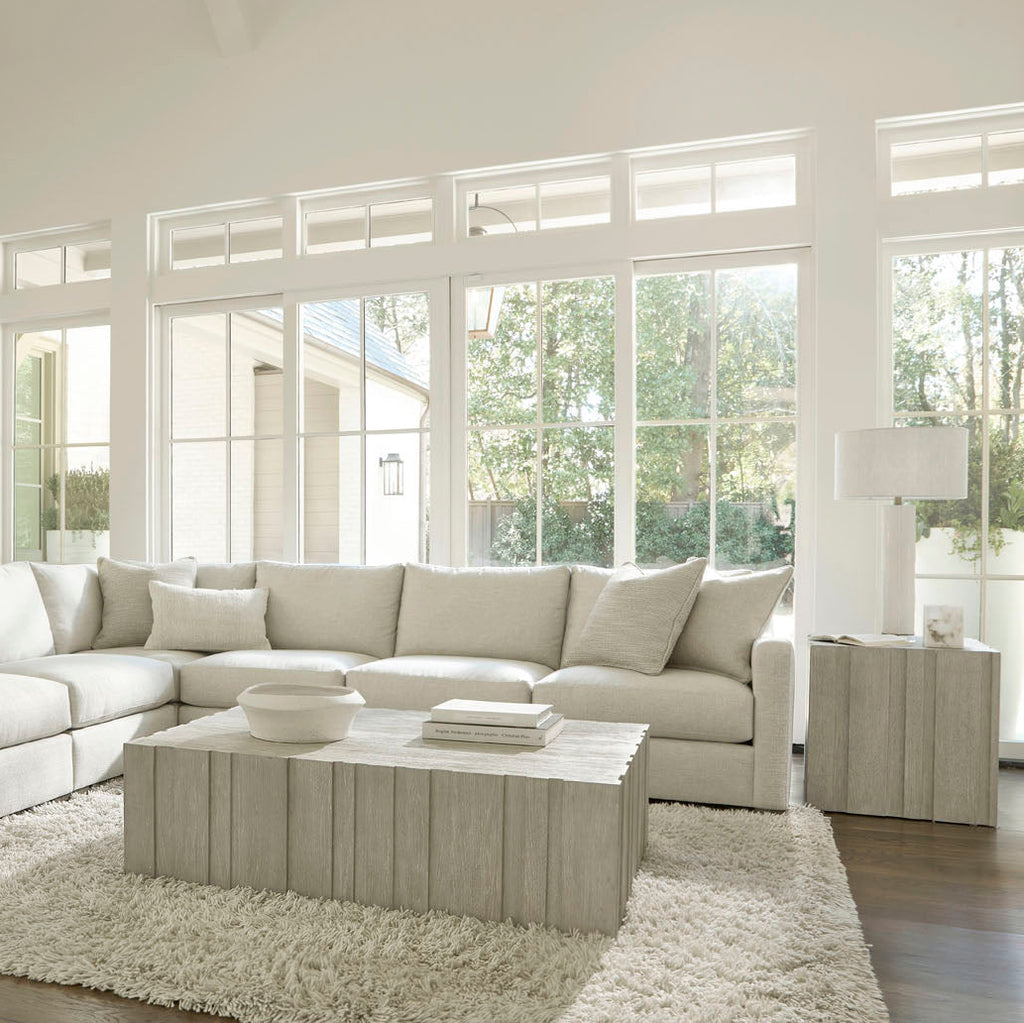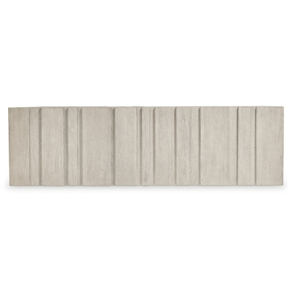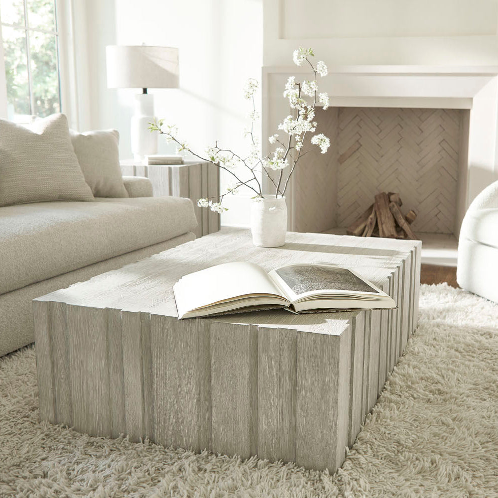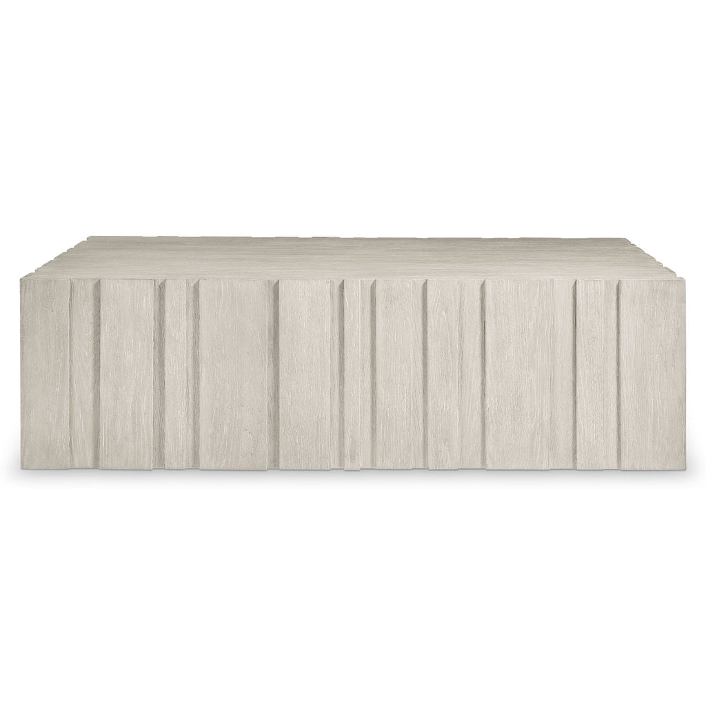 Rhythmic vertical panels of wood create a beautiful depth and dimension on the Tempo cocktail table. Crafted of wirebrushed oak in the Larza finish, the table moves smoothly on hidden casters. It offers a relaxed look with an elevated style.