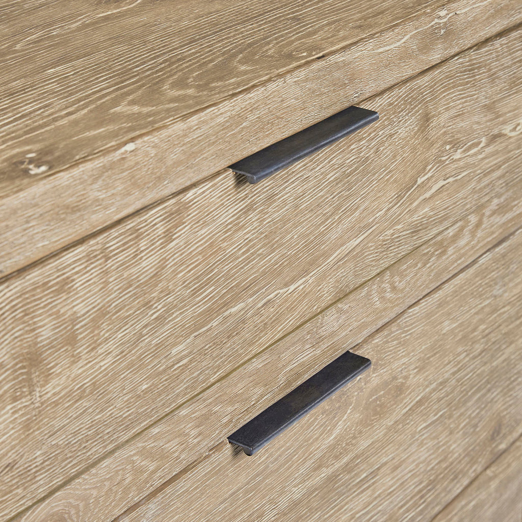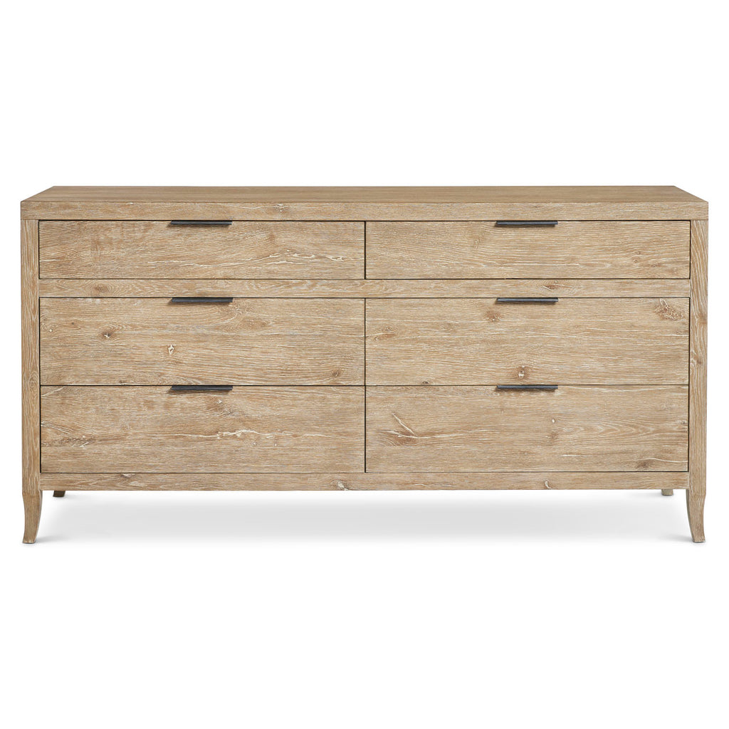 The Tribeca dresser pares traditional design to simpler lines and stunning rustic style. The details of natural wood are highlighted by the Aurum finish. Each of the six drawers has a textured metal pull tab in Barlow finish.