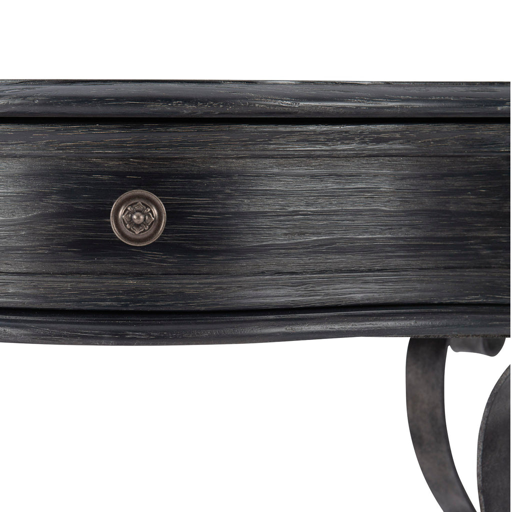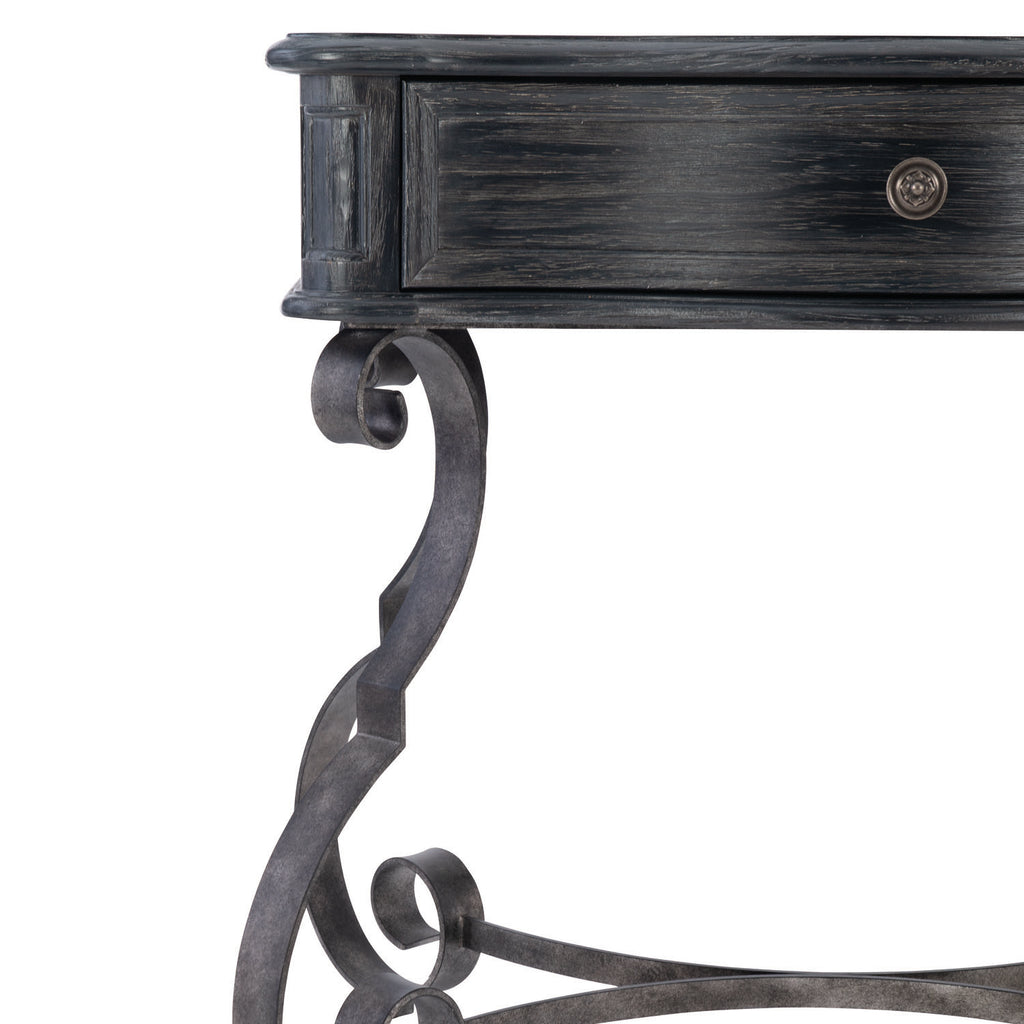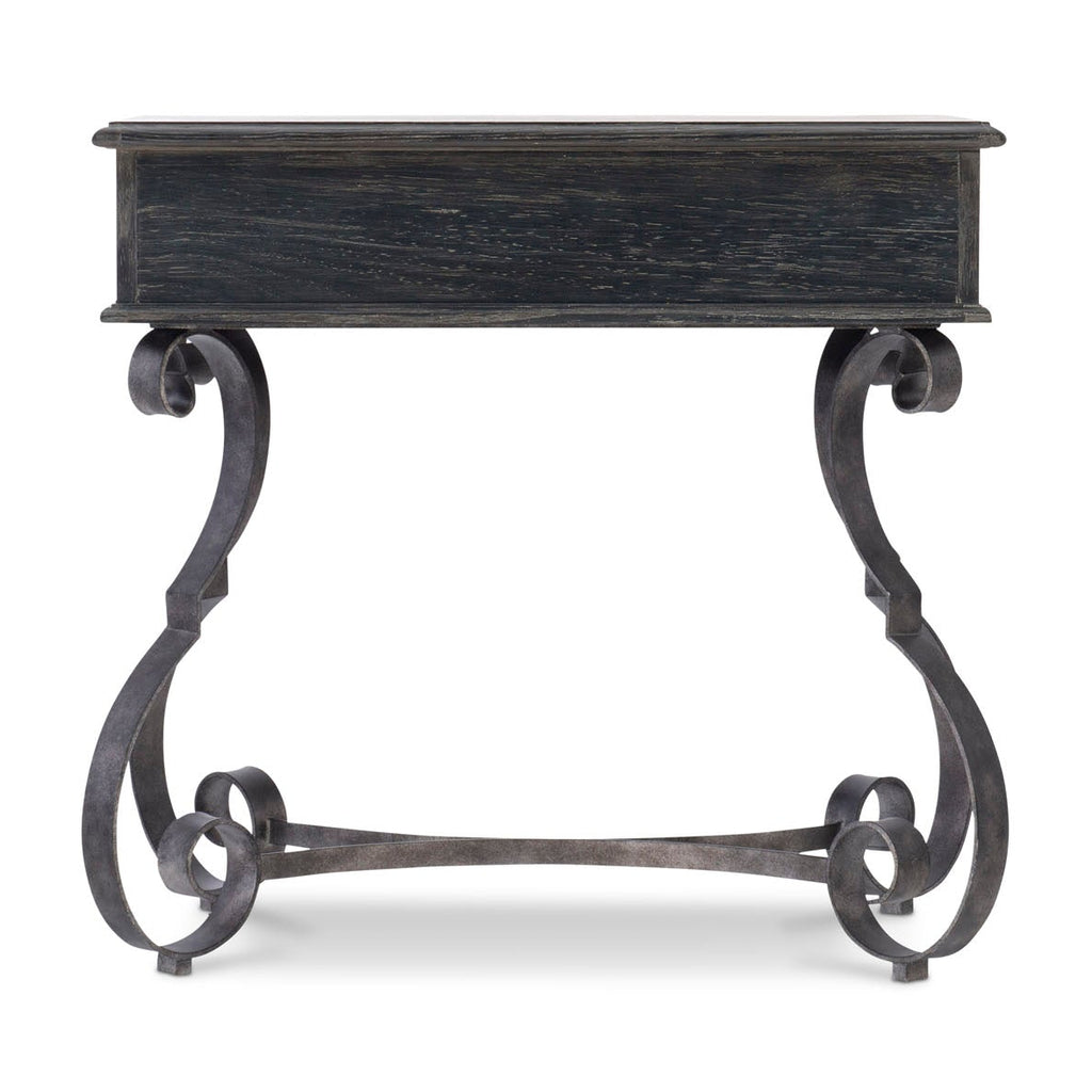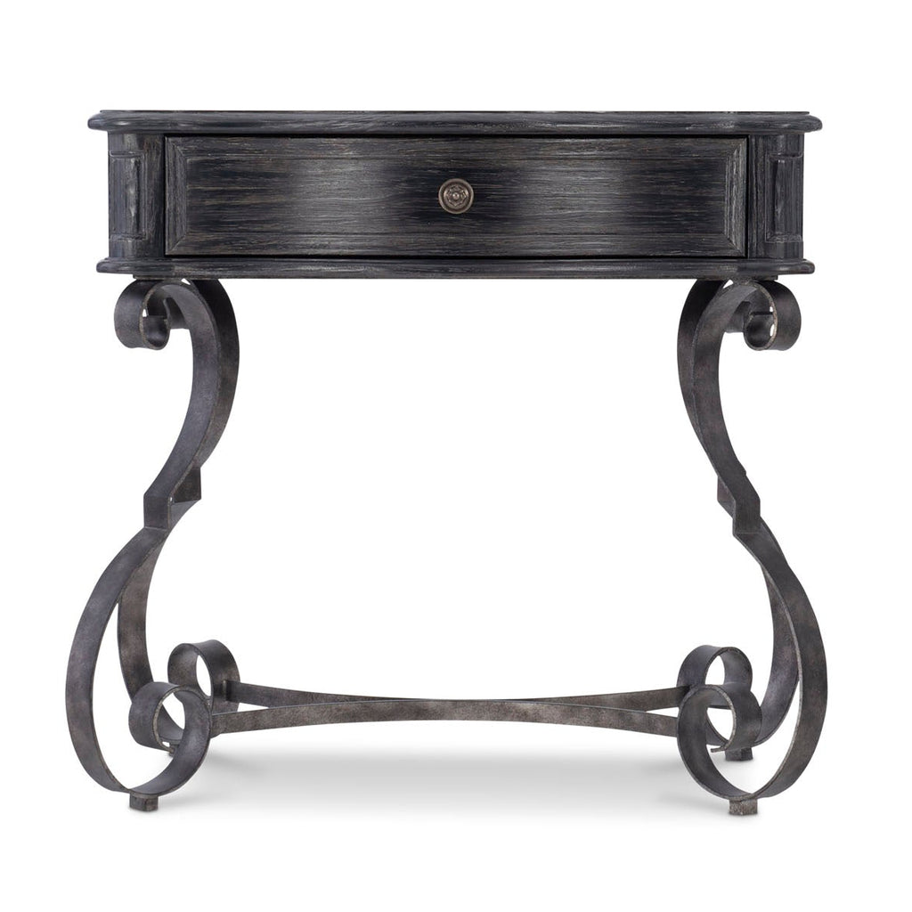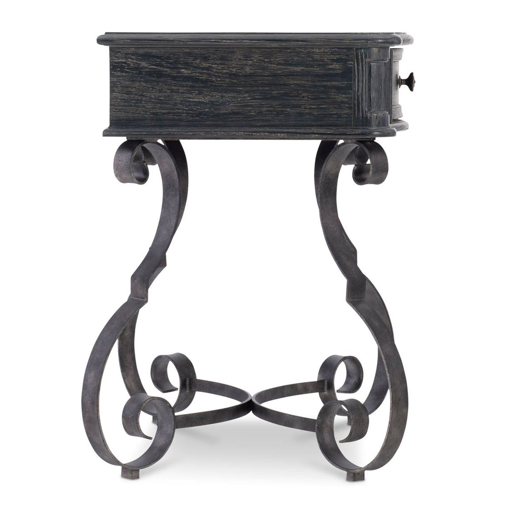 Villa Toscana combines the romance of traditional Italian styling with the rustic beauty of a highly distressed finish. With its timeworn, authentic character, the Villa Toscana nightstand feels like an antique shop discovery. The elegant serpentine drawer box recalls classic Renaissance style, while its soft Ember finish perfectly complements the blackened metal scrollwork of the base.
