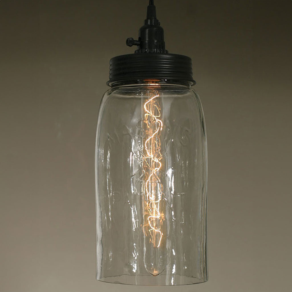 Includes our big Mason jar with a ventilated lid and no bottom. With the open bottom and ventilation on the top, these provide plenty of light while keeping everything cool. This pendant lamps include it all: 15½ foot cloth-covered lamp cord with switched socket, two finished ceiling hooks, two cord clamps for adjusting the height of the lamp, and easy-to-follow instructions. These lamps plug into any wall outlet; no wiring required.