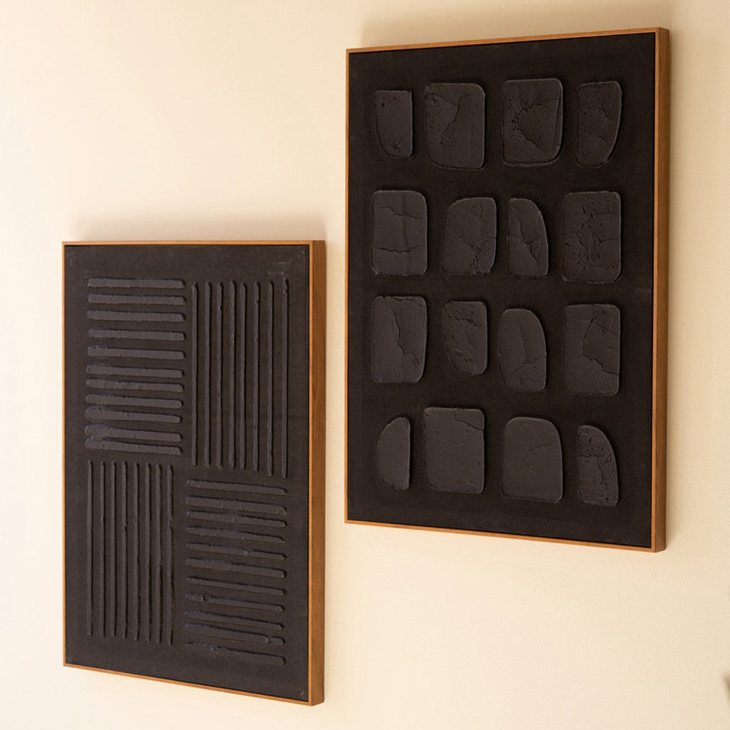 Need a touch of black? Try this set of two framed black abstract wall decor. They are carved in alternating patterns to add texture as well as mystery.