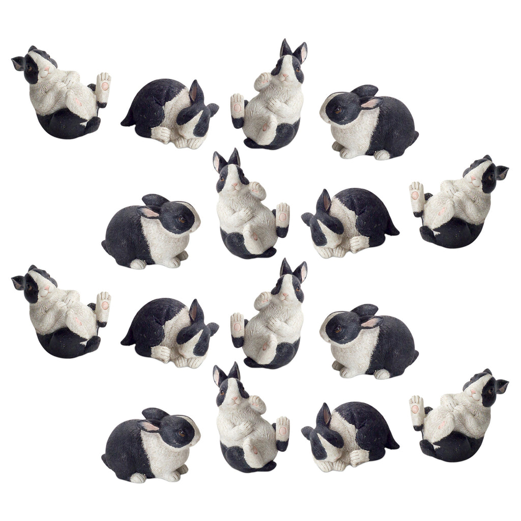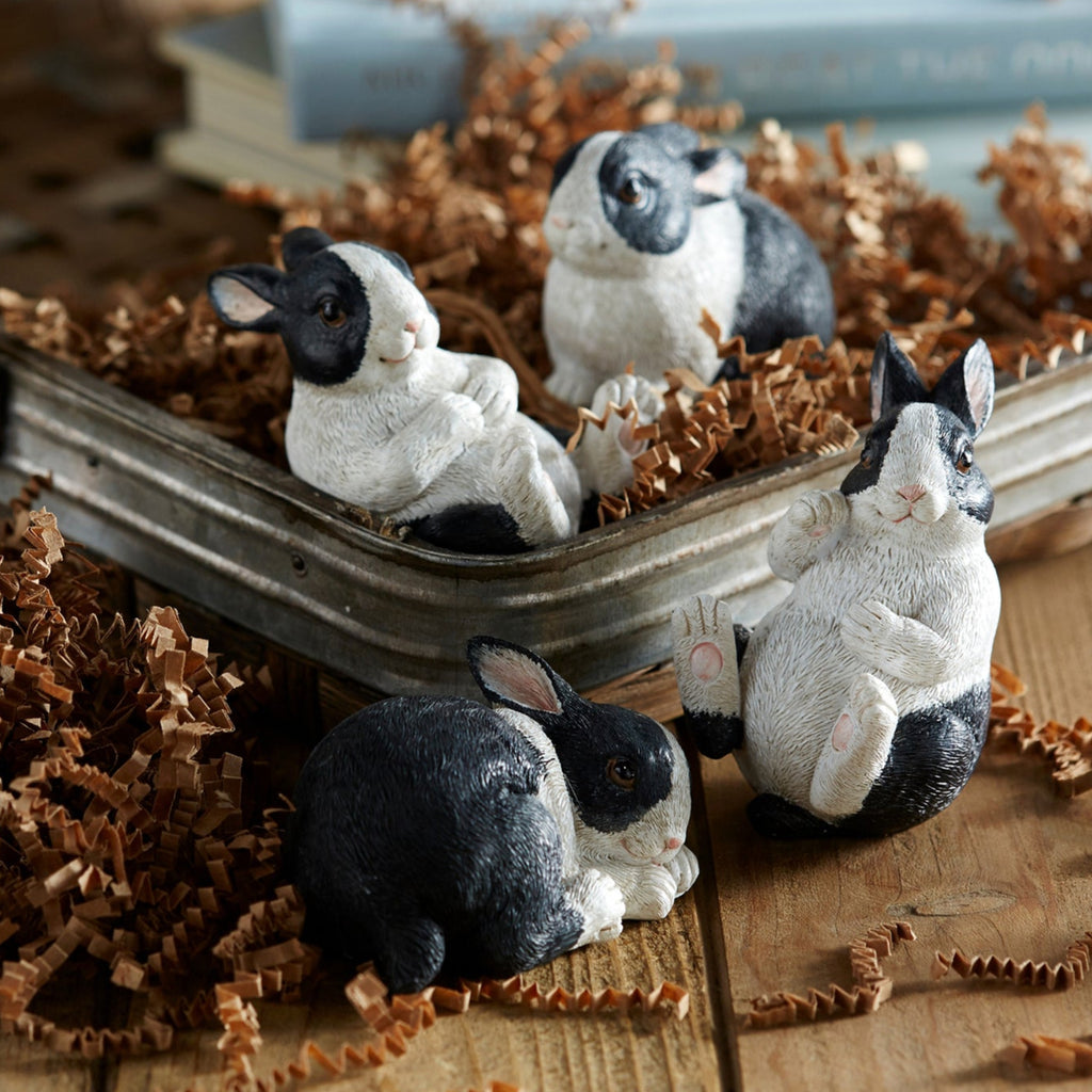 Add a touch of nature to your home with this beautiful set of Rabbit Figurines. Featuring four assorted designs and sixteen total pieces, this set is the perfect addition to your spring home decor. The neutral yet realistic black and white painted finish paired with the quality carved polyresin composition is the perfect combination to create a beautiful spring display. Arrange the pieces sporadically around your home to accent other spring decor, or display them altogether in a centerpiece or table display to make a statement.