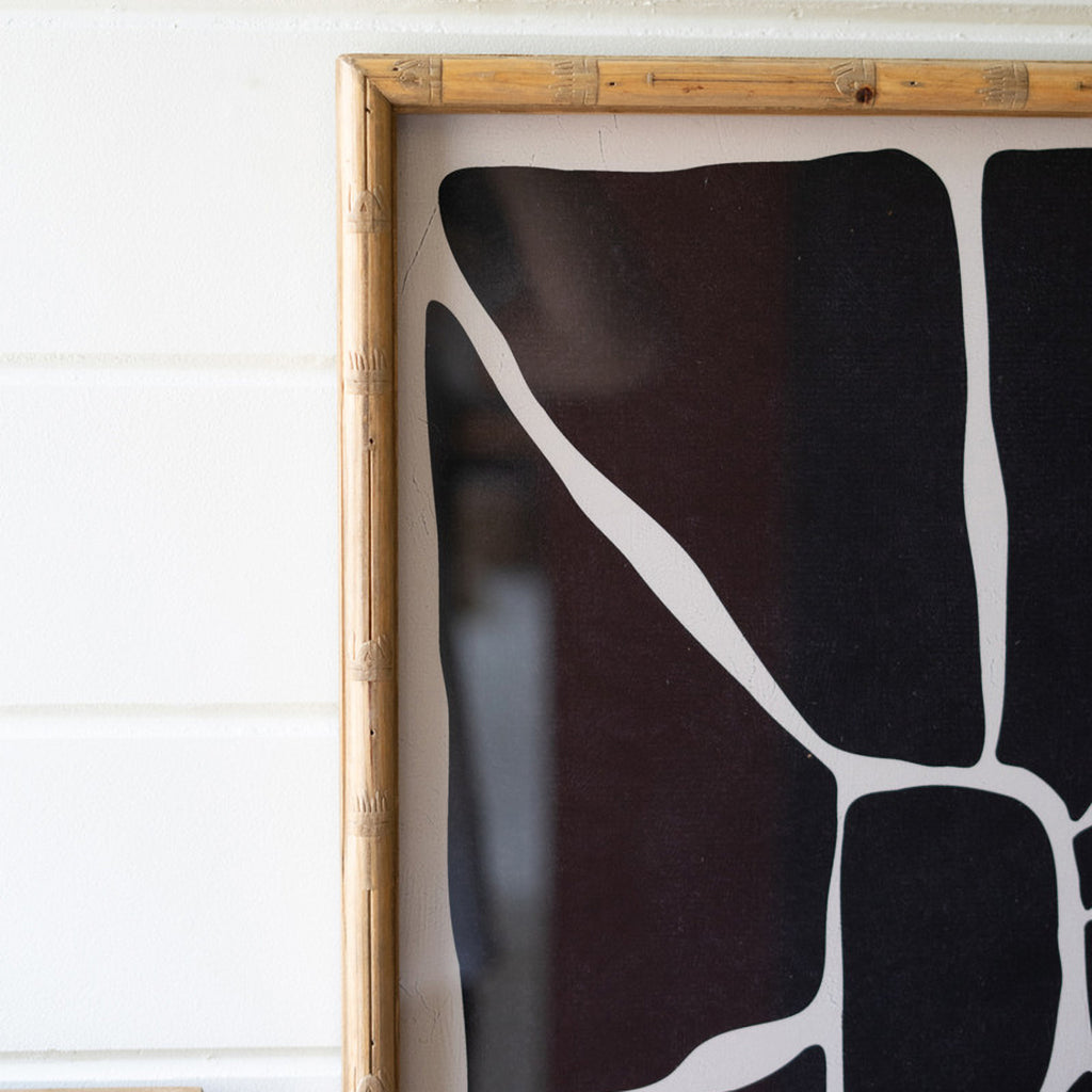 Looking for an eye-catching duo? Try this set of black abstract prints under glass. Whether you see large flower petals, streaks of sunlight, or something else entirely, this set is your new conversation piece in simple wooden frames