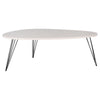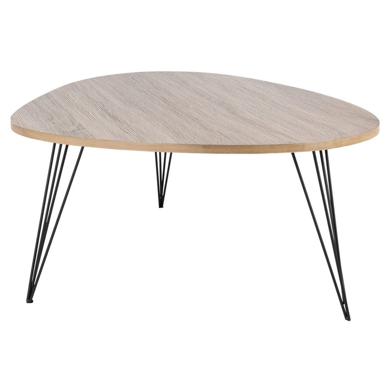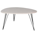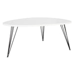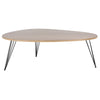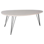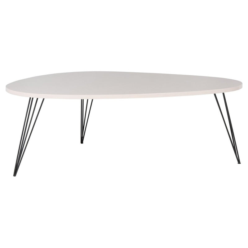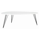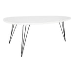Give your living room a high end designer look with the dramatic elliptical shape of this retro coffee table. Inspired by mid-century classics, this striking piece is crafted in multiple top finishes and three sets of hairpin legs in black iron.