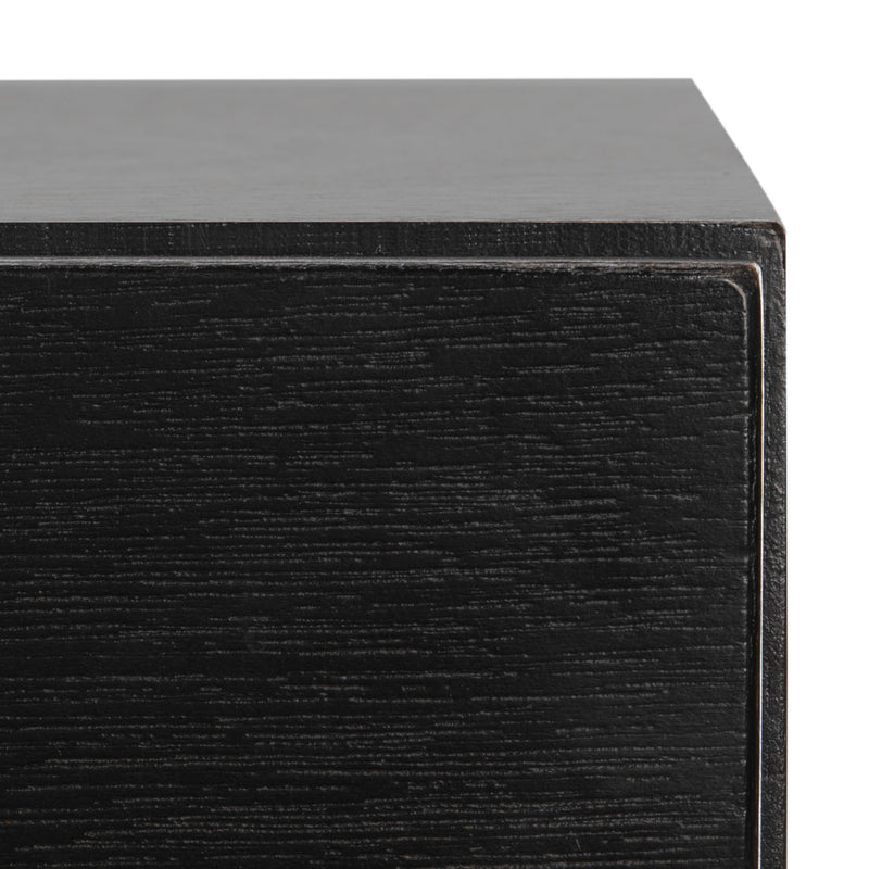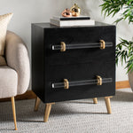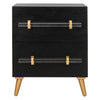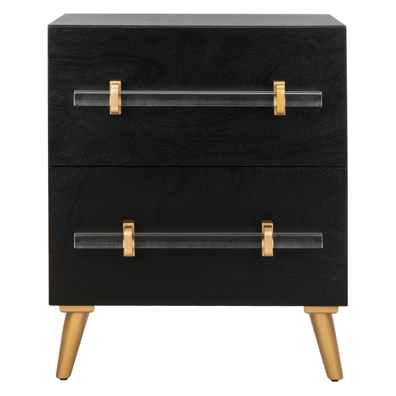 Instantly upgrade any bedroom with this contemporary Bourbon 2-drawer nightstand. Designed with a chic black finish and retro legs, it’s a fresh spin on beloved vintage style. It's mod hardware with gold detail is the perfect accent to its two ample drawers.