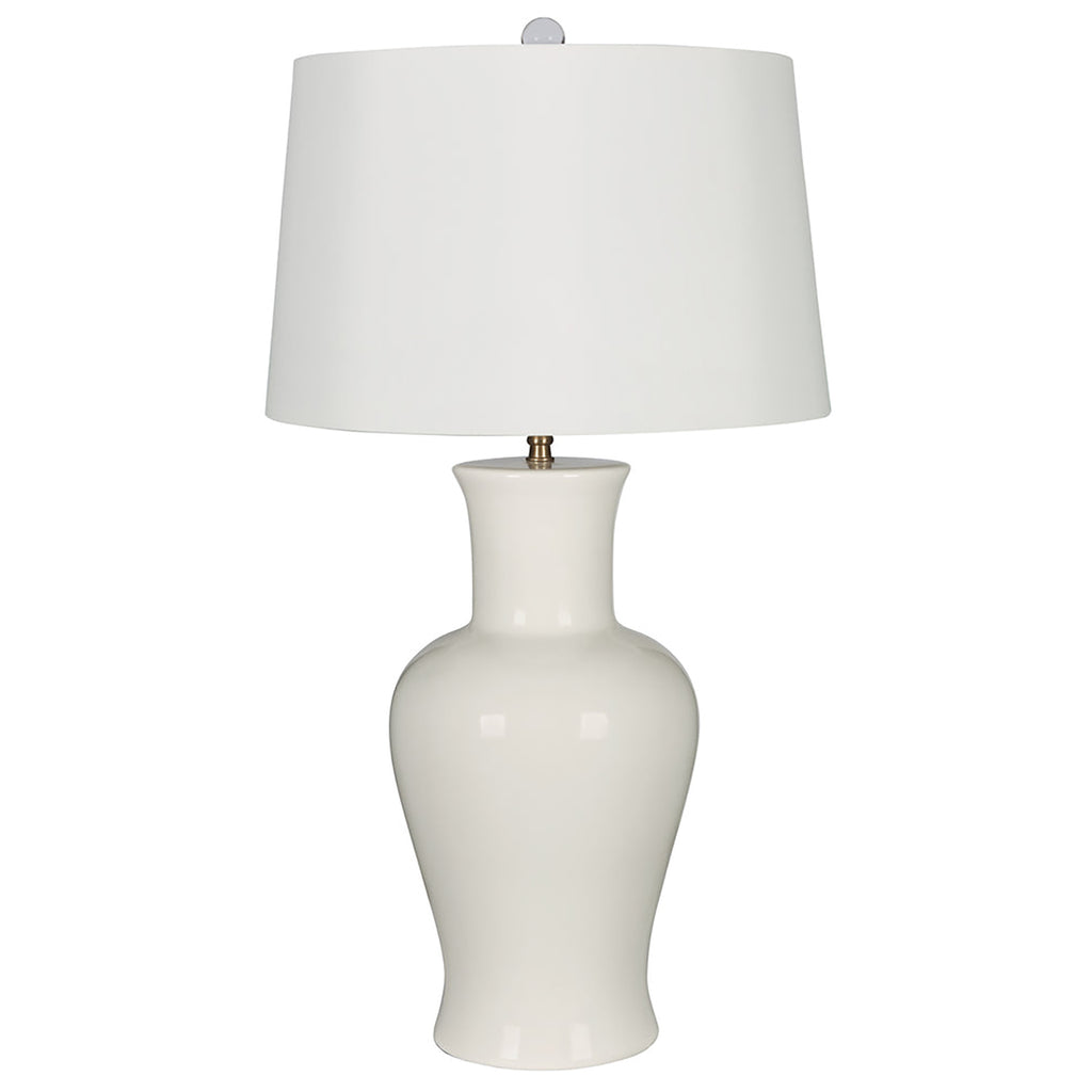 A glam mermaid silhouette pairs with a clean white finish in this traditional ceramic table lamp design. Perfect for a nightstand or side table, it offers compelling curves and true, diffused illumination with its cream linen drum shade.