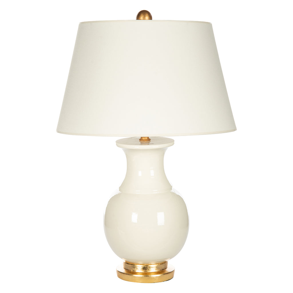 Charming elegance offers a fresh look in a ceramic table lamp with palette versatility and a romantic silhouette. A fresh creamy white finish blends with an off-white tapered cotton blend shade, as a warm metal base offers sophisticated enhancements. A three-way lighting socket offers varying light levels to suit your needs.