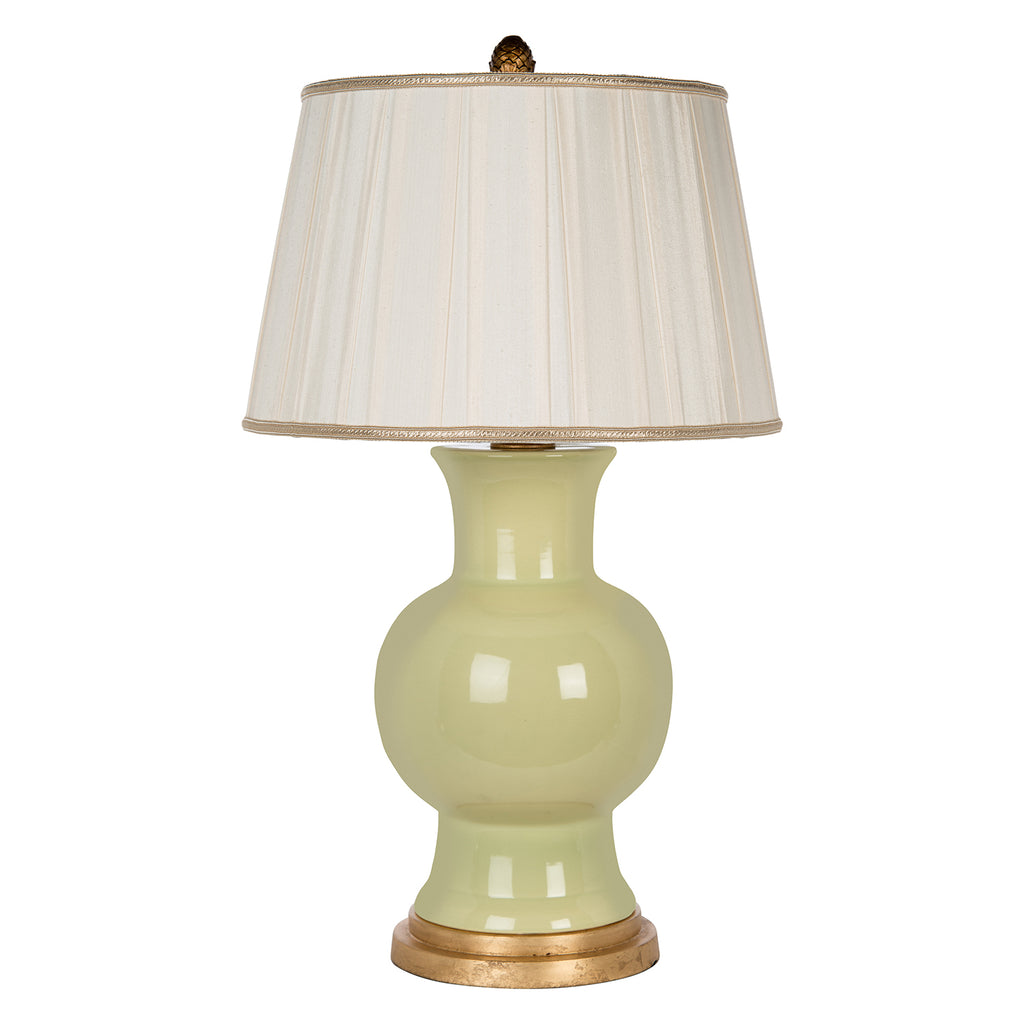 The beauty of this traditional table lamp never subsides, incorporating a soothing citrus finish on the ceramic silhouette. Expect nothing less than a beautiful glow with the French pleated empire shade featuring gold trim accents to complete the coordination of color.