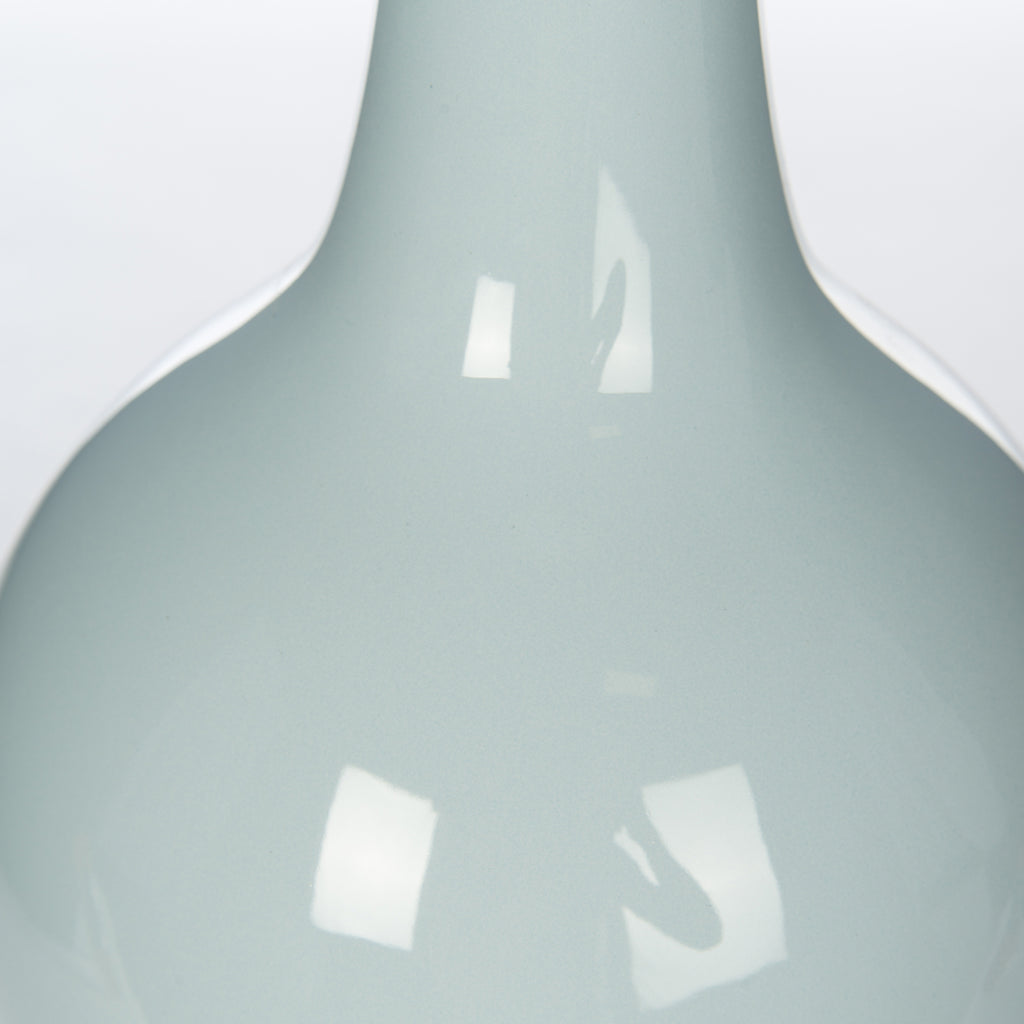 The dramatically long and elegant neck of this teardrop table lamp makes this the perfect display item in an extravagant living room or upscale bedroom. Chic and sophisticated, the blue finish coordinates with this white parchment shade, equipped with gold trim to match the lamp base.