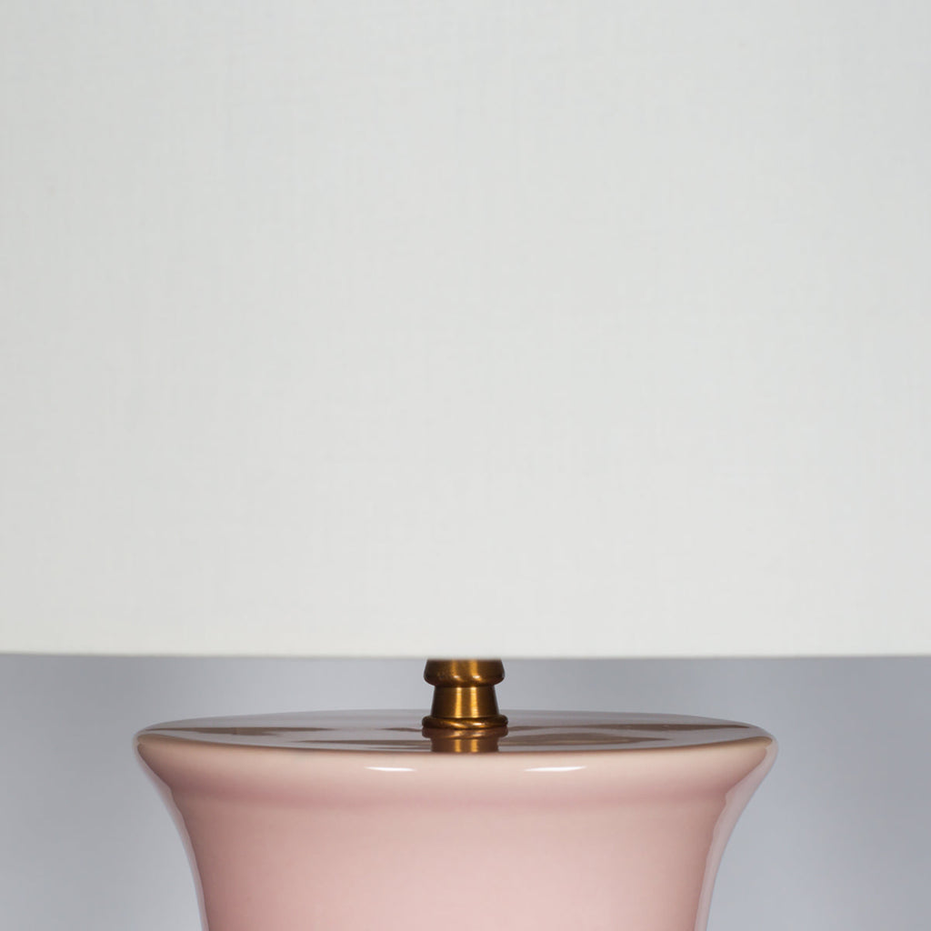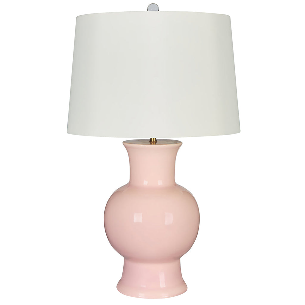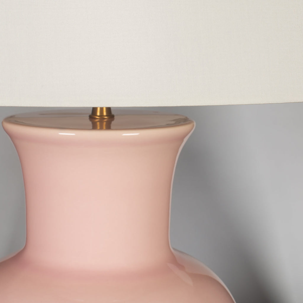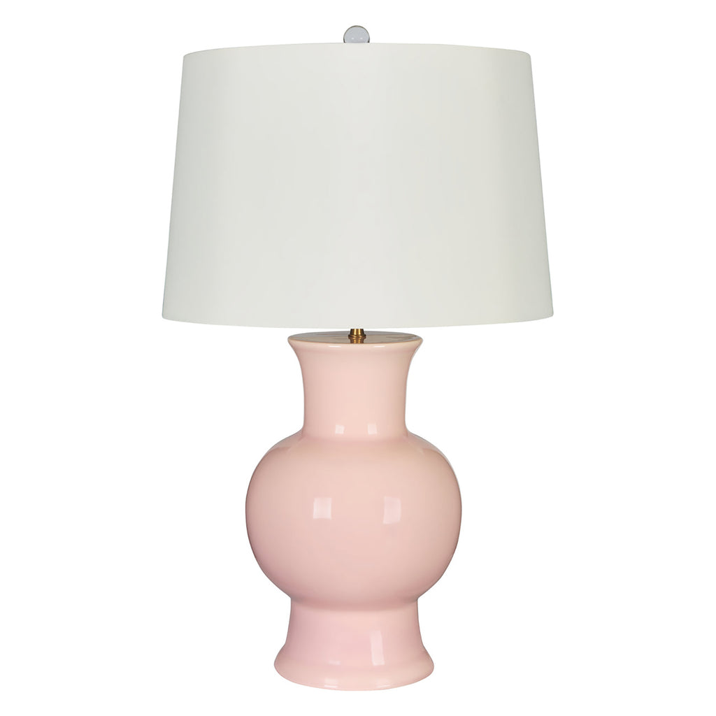 Subtle pink finishing and a compellingly curvy silhouette are a chic pairing for this ceramic table lamp. It's the perfect choice for a nightstand or side table, delivering a soft hint of color while providing excellent illumination with a white parchment drum shade. Its bold curves enliven any setting.