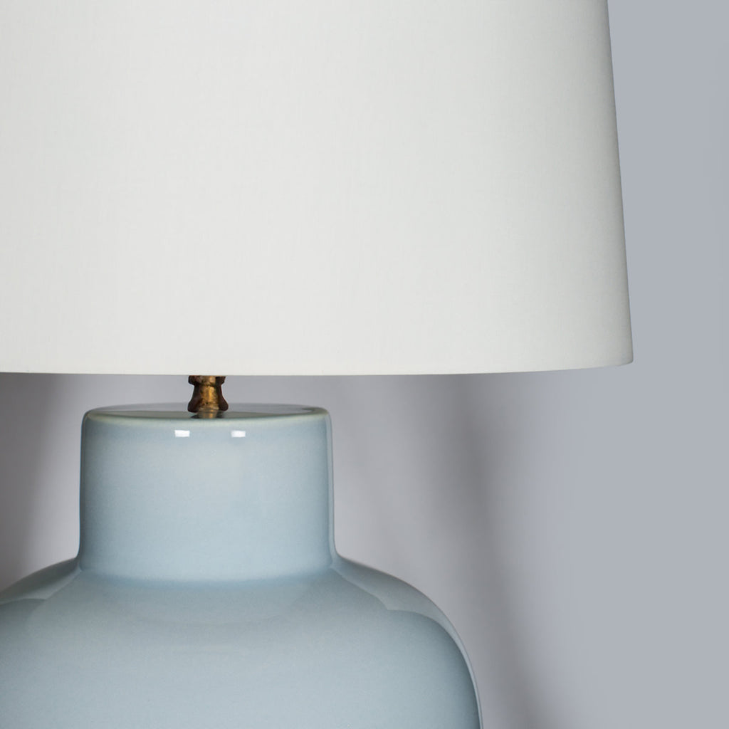 Voluminous curves provide chic inspirations for this transitional ceramic table lamp. In a soft light blue, it's a perfect complement to coastal decor, offering bright, true illumination with a drum shade perched on top.