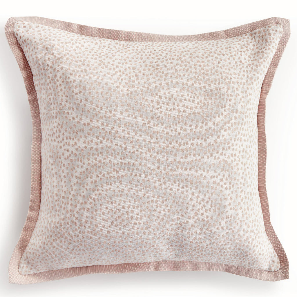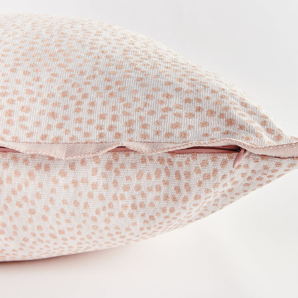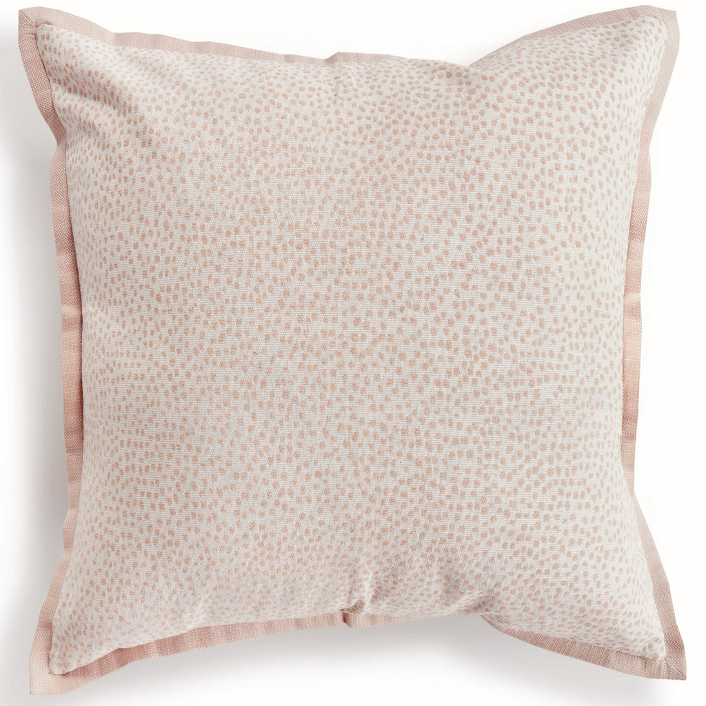 The indoor pillow that lives beautifully outdoors. Enjoy the upscale luxury and durability of Jacquard. With a woven blush and white pattern, it plays well with any palette. This pillow is weather resistant and responsibly made. Filled with 100% recycled fibers.