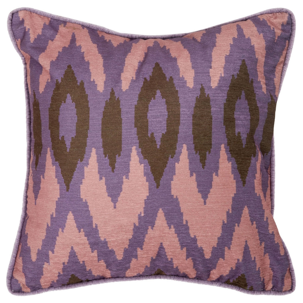 A melting pot of cultures created the colorful Ikat fabrics so popular today in apparel and home fashions, and this tie-dyed pattern printed on polyester in shades of lavender reflects the a striking example sure to enliven any room. Sold as set of two.