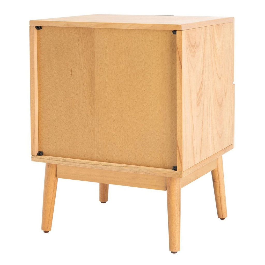 Mid-Century chic goes contemporary-coastal in this beautiful nightstand. Featuring one of two drawers accented with natural rattan webbing for artistic intrigue that captivates the eye, designers love using in pairs for seaside-styled bedrooms. Retro splayed legs complete the look.