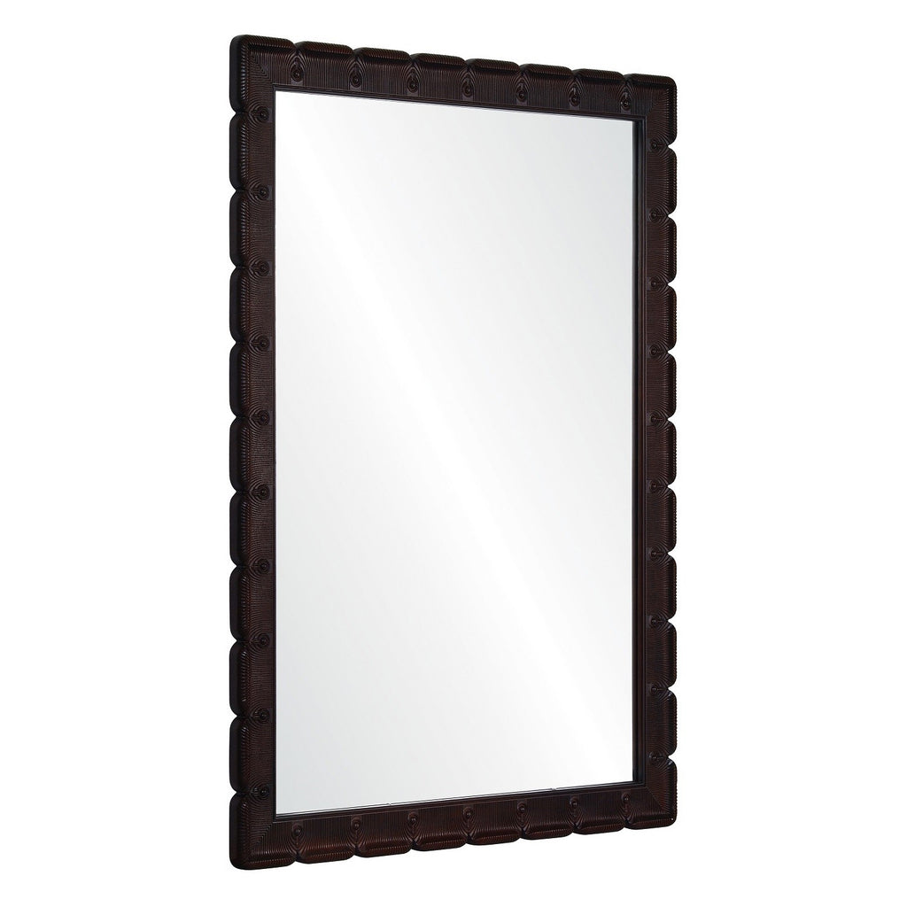 Designed by Bunny Williams for Mirror Home. Hand carved mirror finished in dark mahogany with a non-beveled center mirror. Wood backing in satin black finish. Cleat hanging hardware provided.
