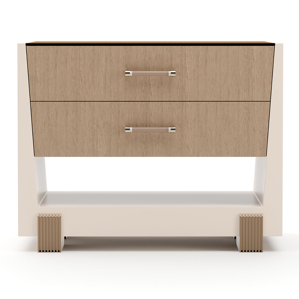 Designed to perfectly complement the Counter Balance Bed, the Counter Balance Large Nightstand brings a refined, modern elegance to the bedroom. Its Smoked Bronze glass top offers a sleek contrast to the rich Chocolate Koto finish, accented with touches of Brushed Gold. Thoughtfully crafted, it balances style and functionality with effortless sophistication.
