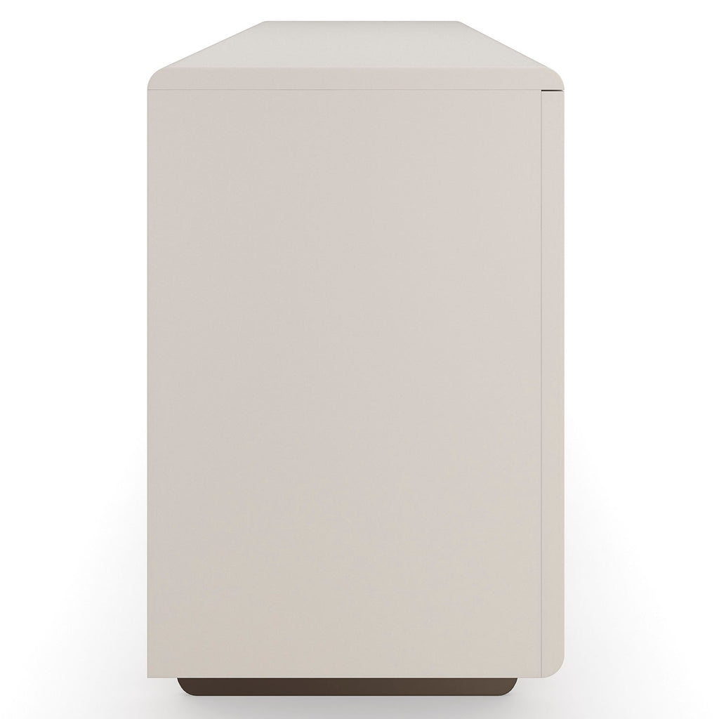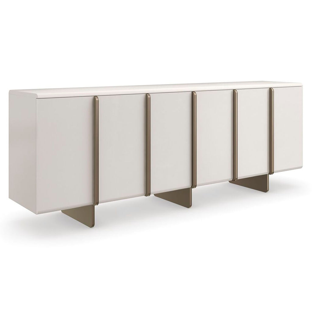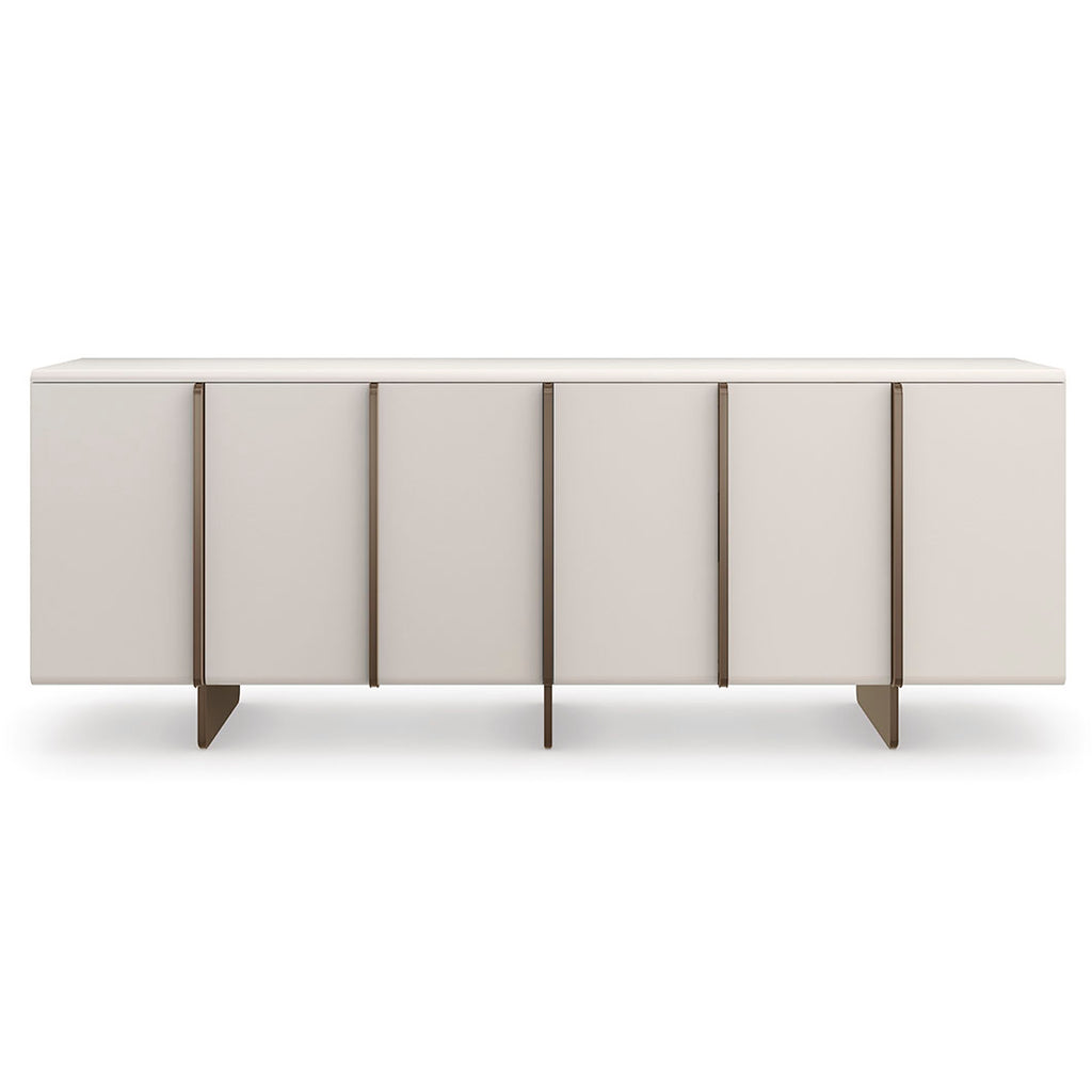 An innovative textured adobe finish lends depth and an organic element to this modern take on a 1940s-era Italian design. Sensory and sophisticated, its simple linear form features gently rounded edges and soft-close doors trimmed in a warmly accentuating, Lucent Bronze Metallic metal. Versatile in form and function, it offers a chic storage solution for dining and living rooms, hallways and home offices.