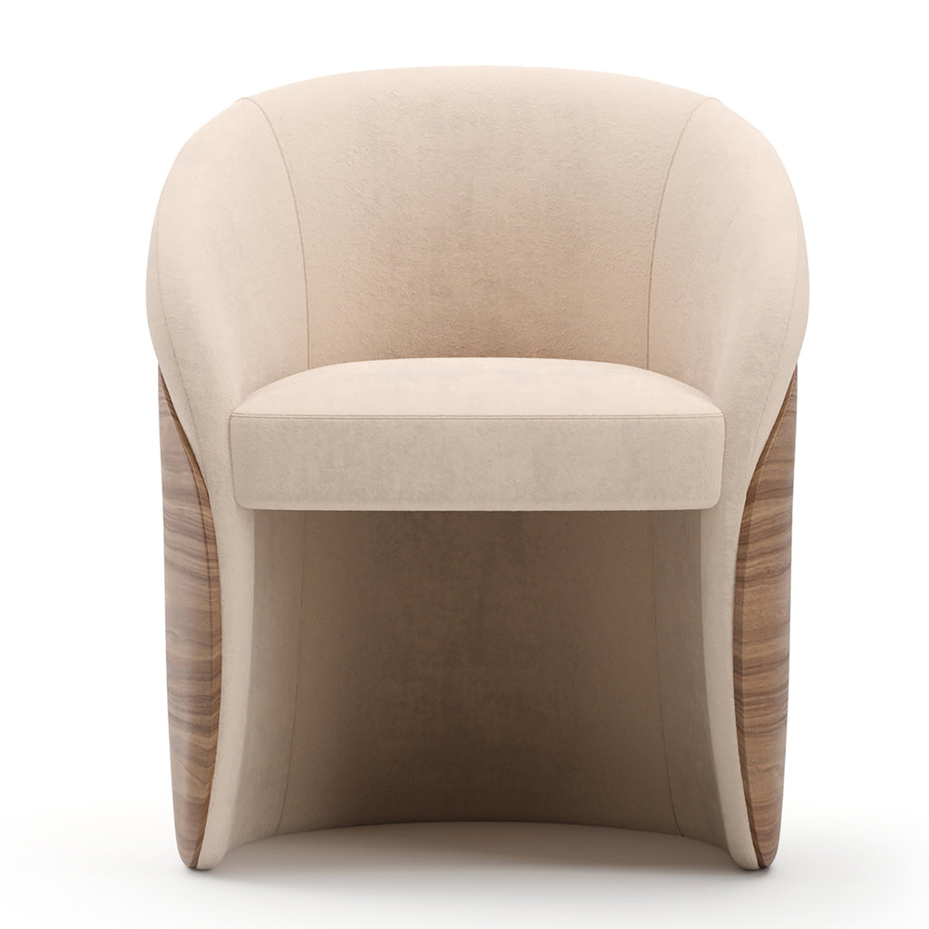 Bring understated sophistication to your dining room with the Fleur Dining Chair. Upholstered ivory faux mohair seating and a refined Porcini-finished wood frame blend seamlessly, creating a graceful dining experience.