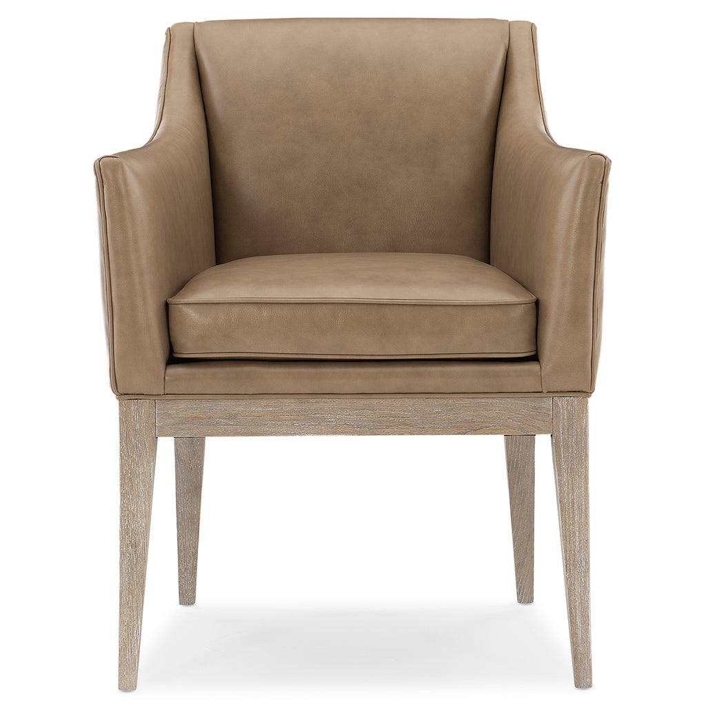 Dining has never been so effortlessly elegant as with this eye-catching dining chair. The perfect mate to a statement dining table, its classic profile is fully upholstered and sits atop tapered legs wearing an easygoing Ash Driftwood finish. Put it at the head and foot of the table for a touch of casual modern style or make it a seat for everyone so no one fights over sitting in it. Plush cushioning ensures leisurely dining while this chair’s charming countenance makes it easy on the eyes.
