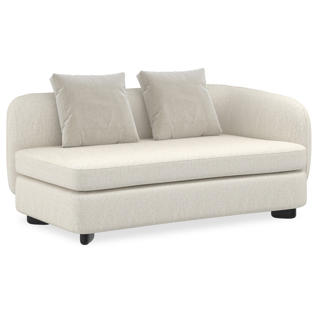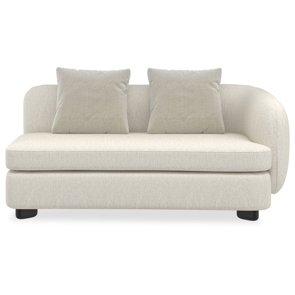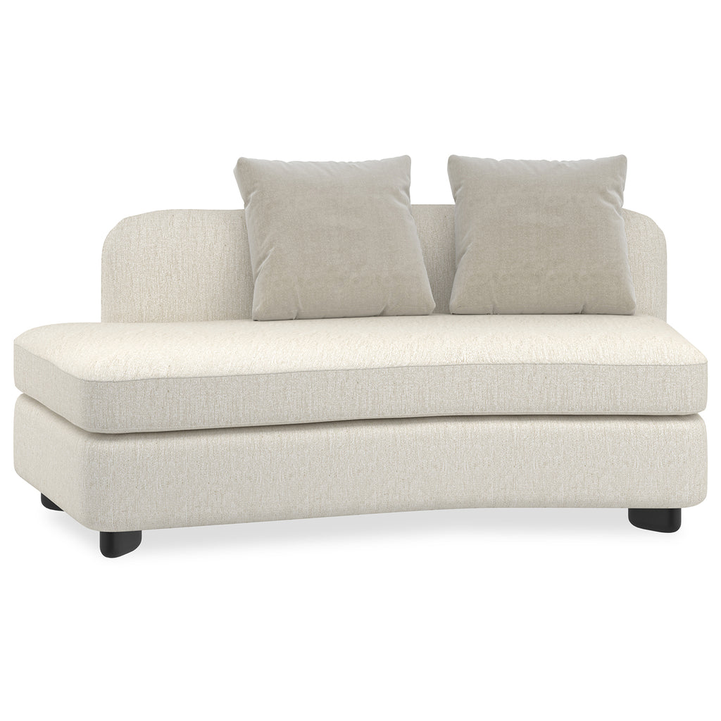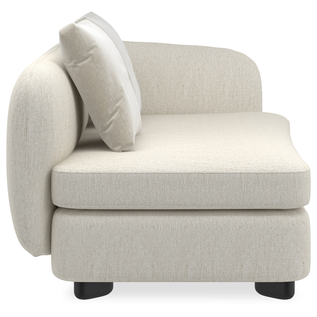 The Lumi has been giving a heavy dose of comfort in this design. The piece can stand on its own or be combined with other pieces of the Lumi Sectional. You will want to sink into its ivory plushly-stuffed seat. The back extends across the length of the piece and curves around the left side. The body of the chaise is fully upholstered in a micro-ribbed linen blend, while two cushions feature an Ivory mohair and wool-blend velvet. The chair’s pegged feet pop from underneath in Almost Black.