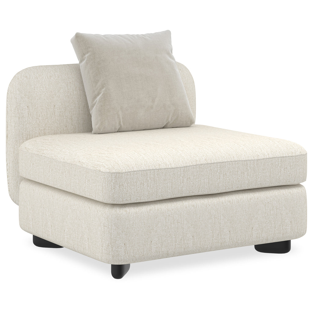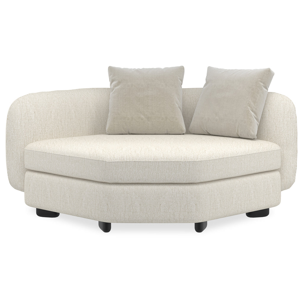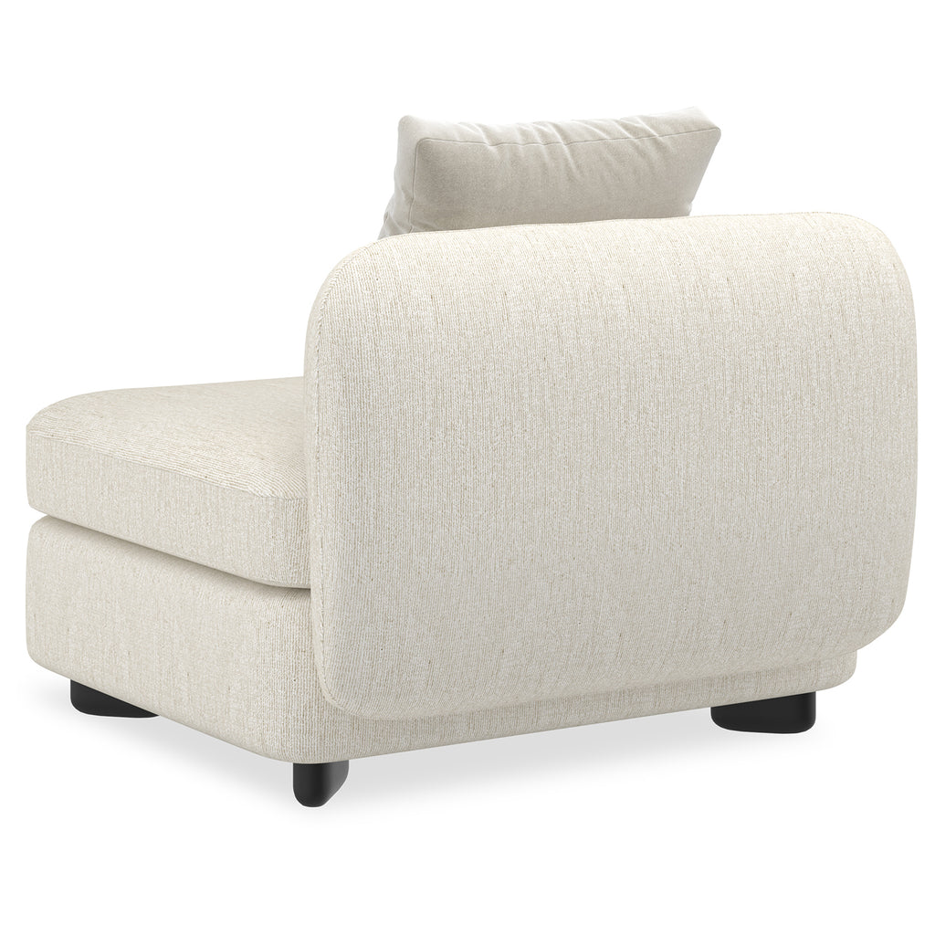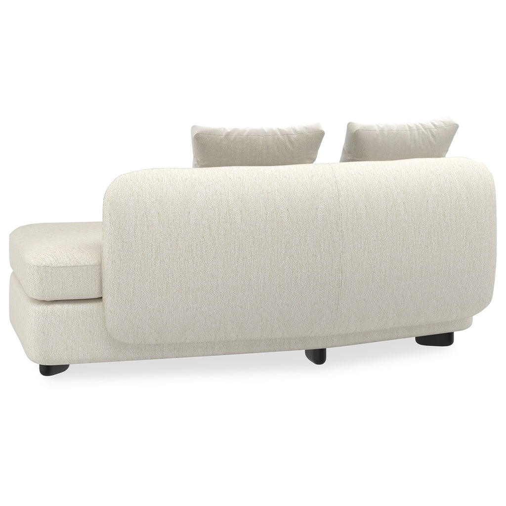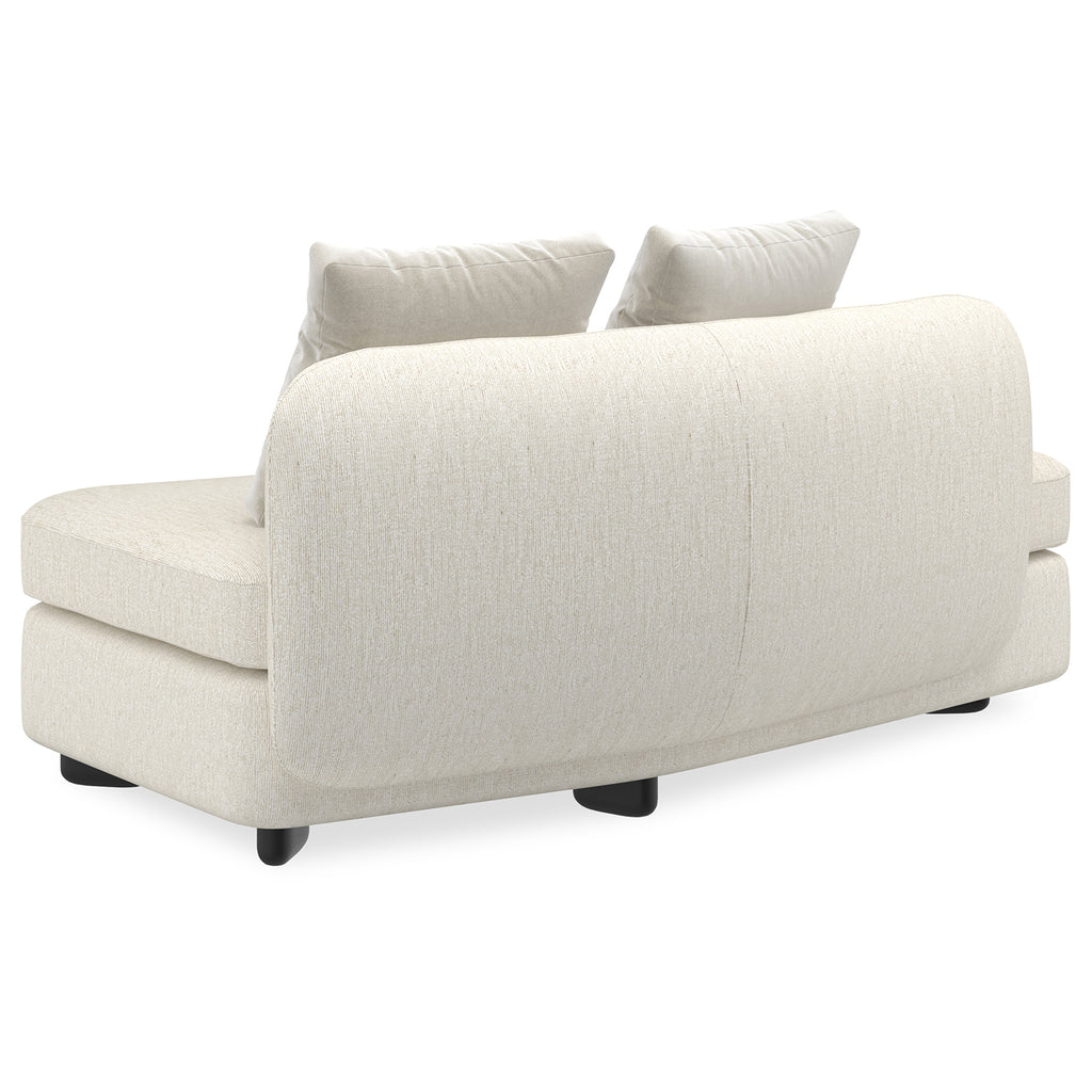 The Lumi has been giving a heavy dose of comfort in this design. The piece can stand on its own or be combined with other pieces of the Lumi Sectional. You will want to sink into its ivory plushly-stuffed seat. The back extends across the length of the piece and curves around the left side. The body of the chaise is fully upholstered in a micro-ribbed linen blend, while two cushions feature an Ivory mohair and wool-blend velvet. The chair’s pegged feet pop from underneath in Almost Black.