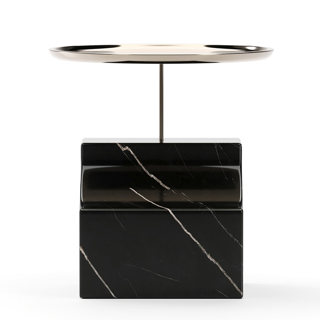 • Stone accent table in Nero Marquina.