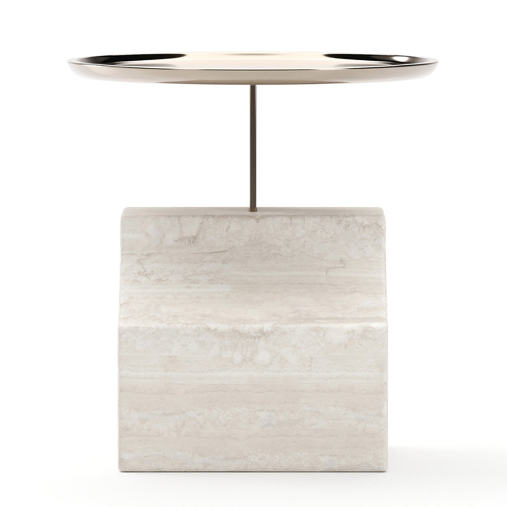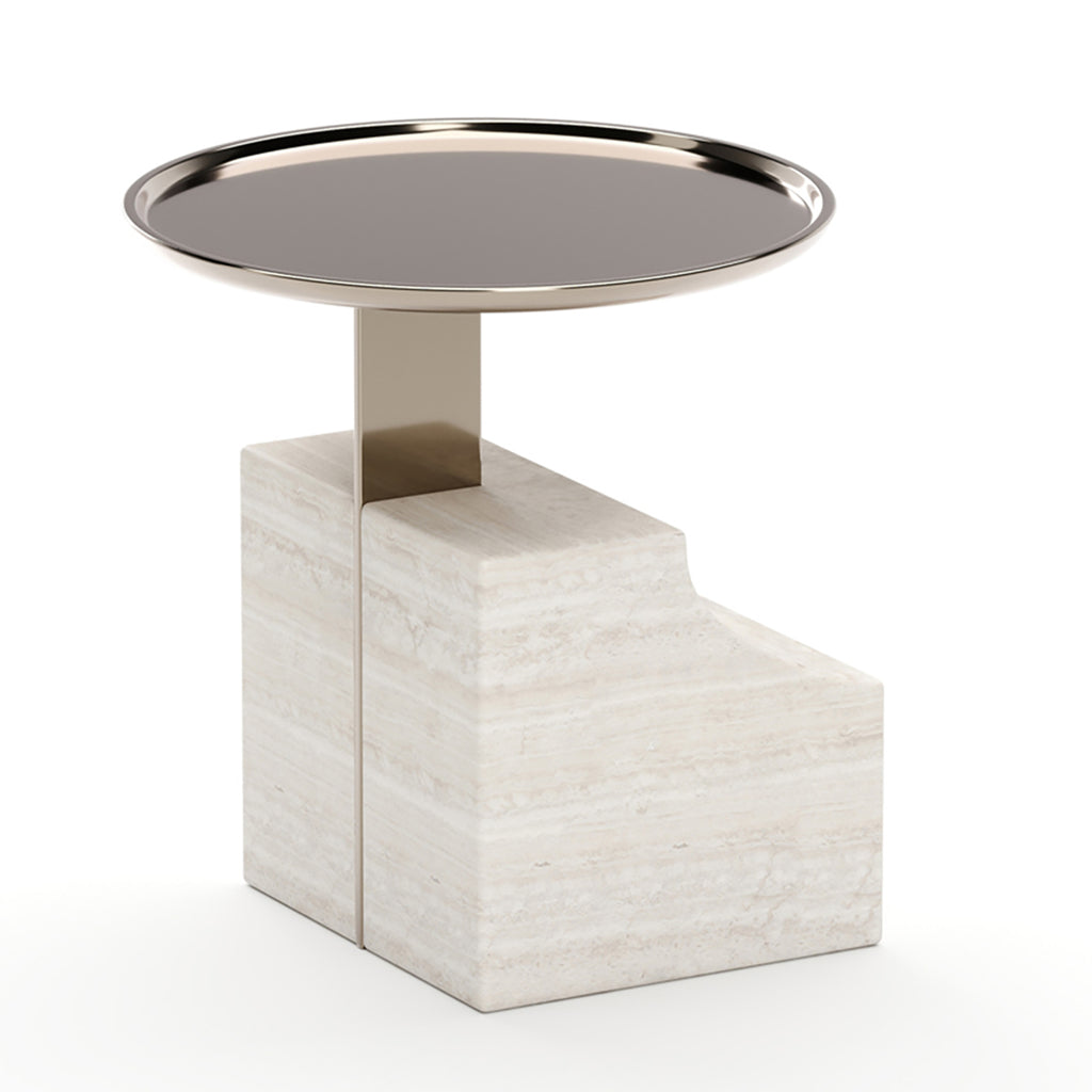 Discover the timeless sophistication of the Overlap Accent Table in a warm, unfilled Travertine. Enhanced by delicate Whisper of Gold accents, it infuses your space with gentle luxury and refined charm.