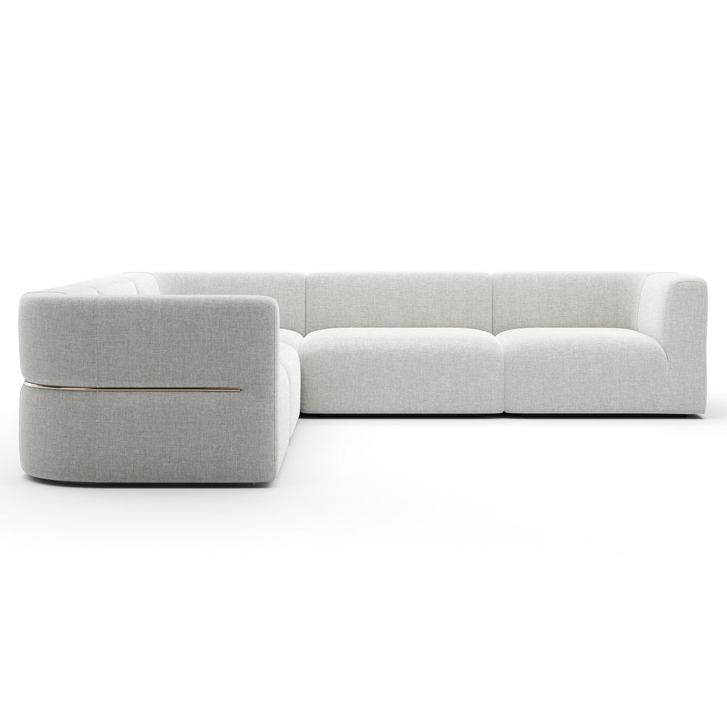 Offering plush comfort and modern elegance, the Rhythm sectional Ivory features luxurious ribbed linen upholstery, complemented by a refined Neutral Metallic base and delicate Lucent Bronze Metallic metal accents. Perfectly suited to sophisticated spaces.