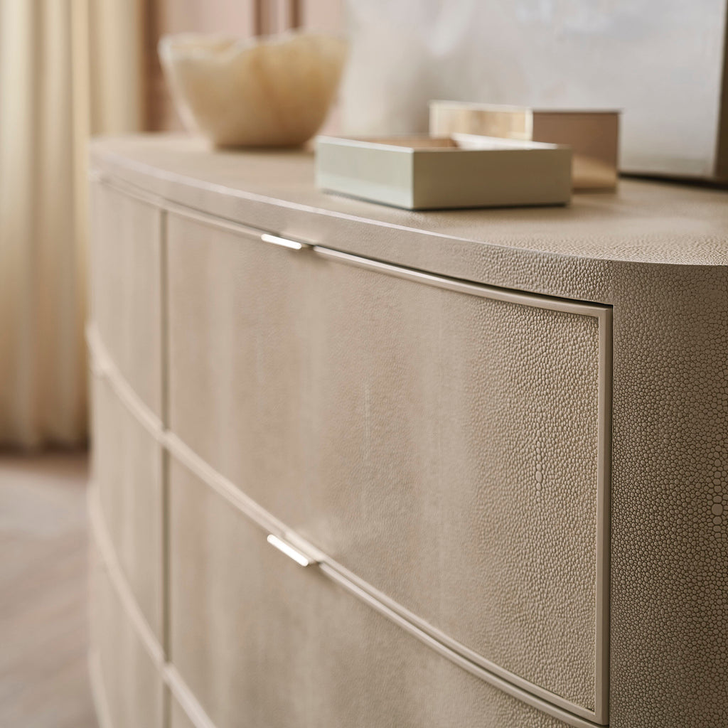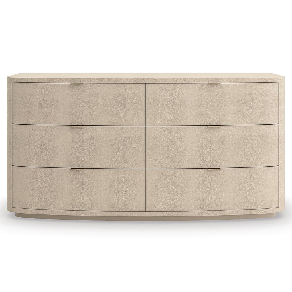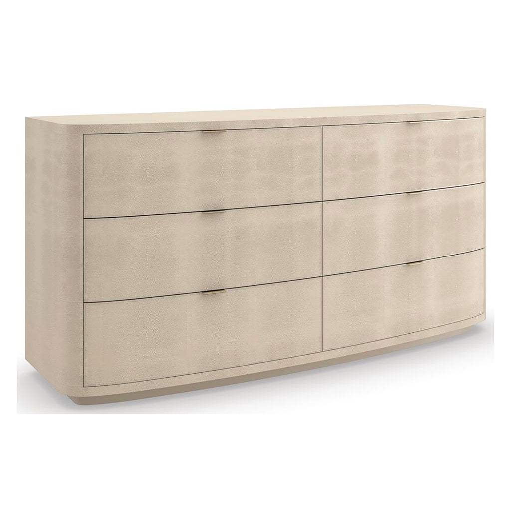 A celebration of material and purity in form, the Caracole Simply Perfect dresser makes an understated yet alluring statement. Wrapped in an ivory-painted, pieced faux shagreen, its classic silhouette introduces subtle texture and a note of luxe to bedroom interiors. Style alongside our Simply Perfect nightstand, or as a sophisticated piece on its own.