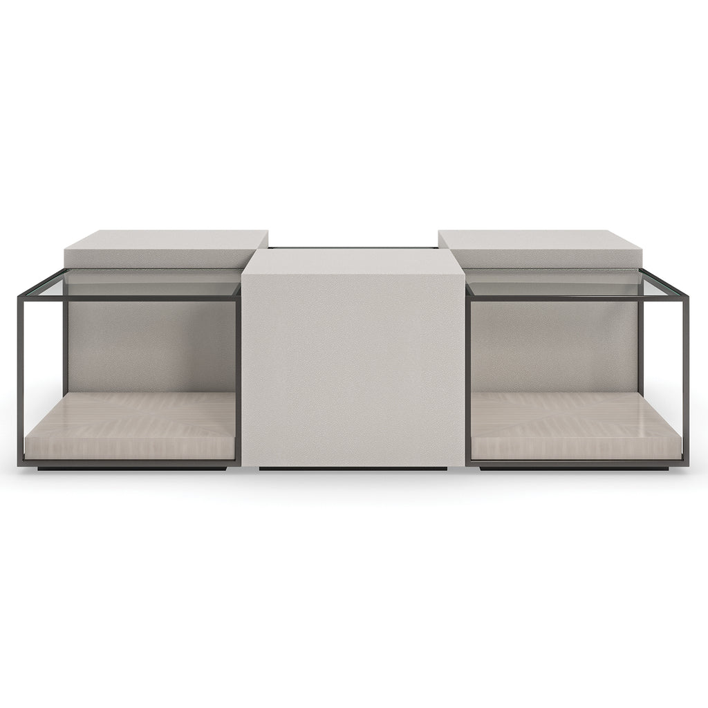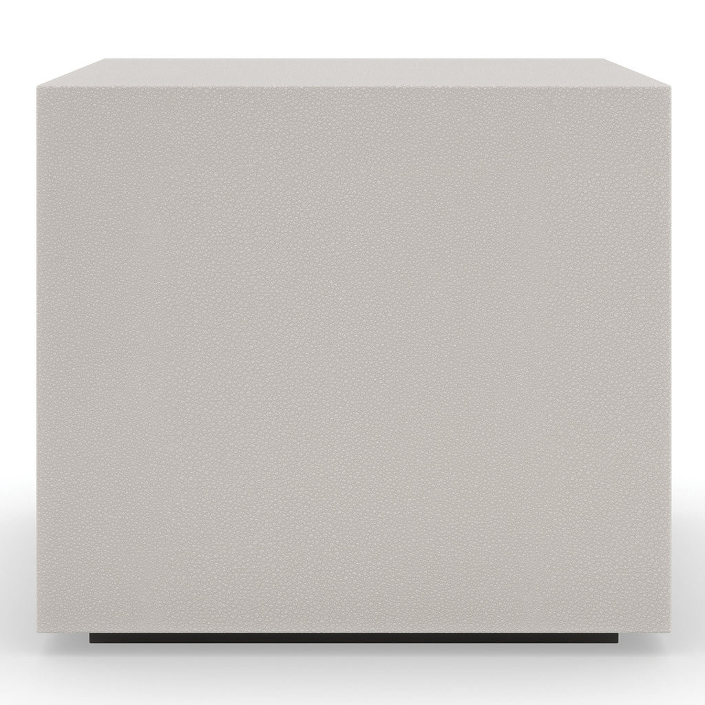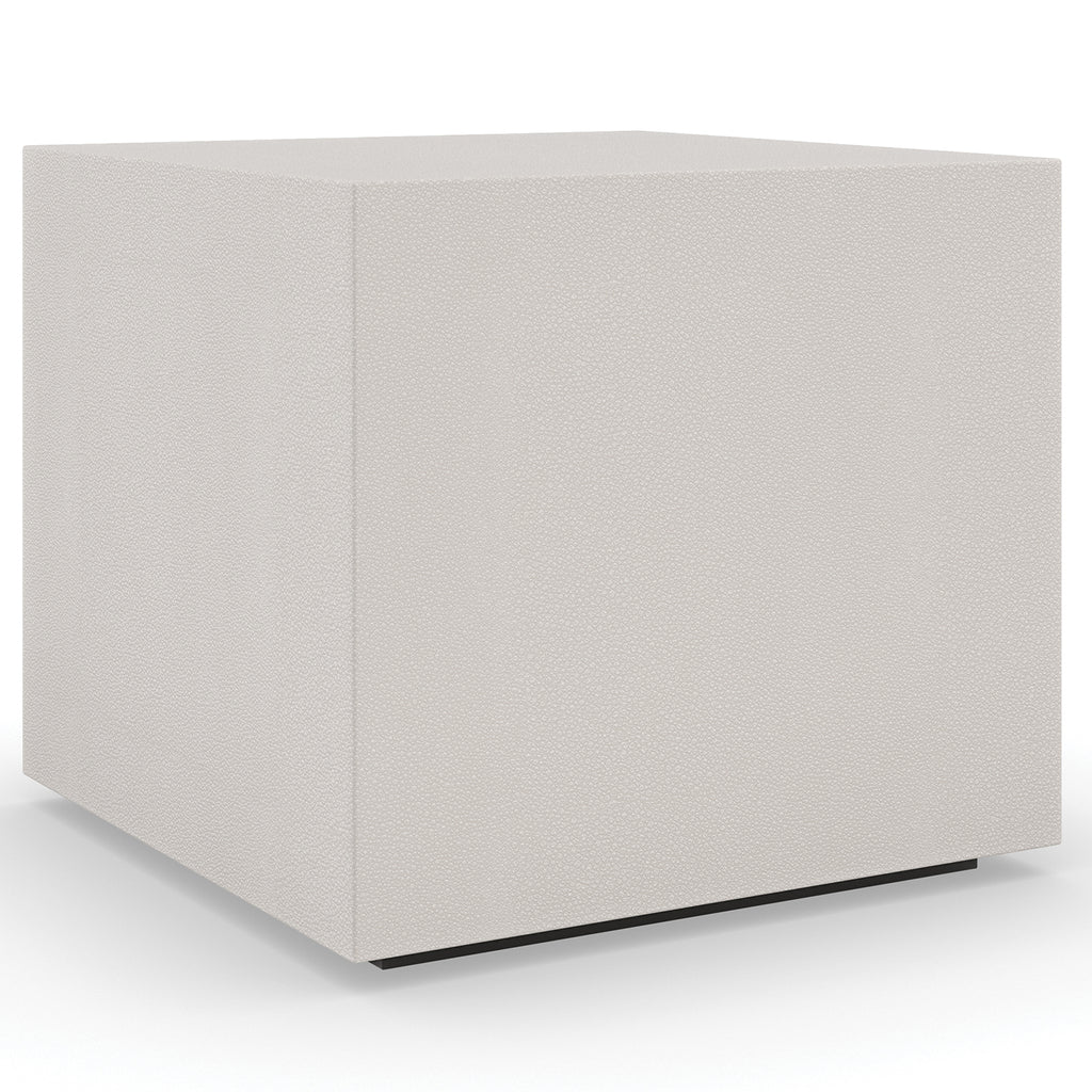 Styled in multiples or on its own, this refined cocktail table makes a solid statement in a richly textured faux shagreen. Fully wrapped, its classic cube shape appears to float on a recessed, wood plinth base in an Almost Black finish. Pair with the Open Air cocktail table and create a multi-dimensional, layered collection that reflects your style.
