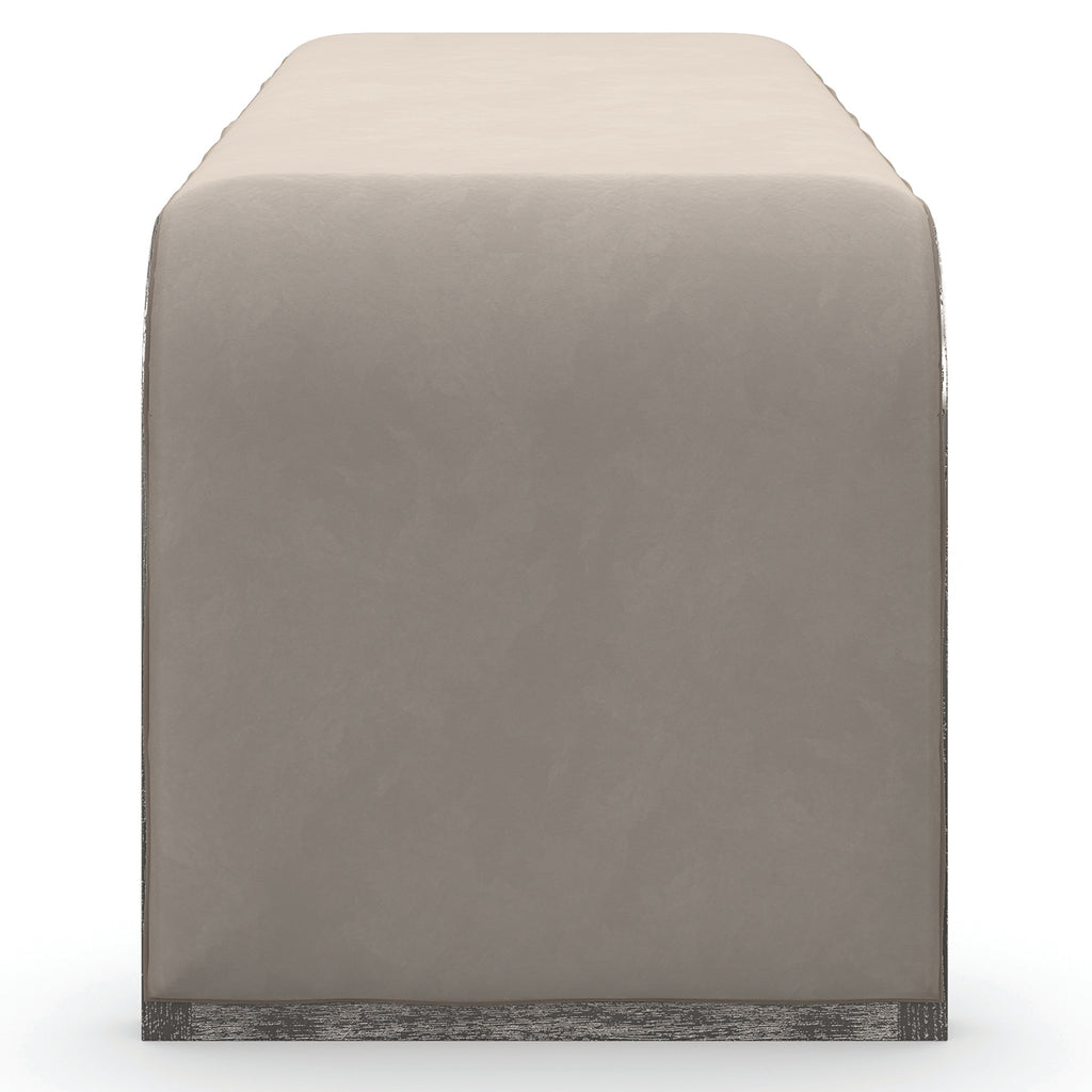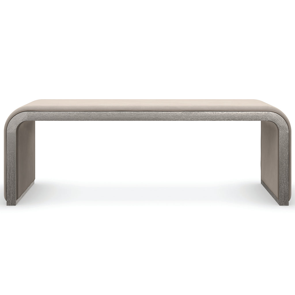 With cascading curves in a smooth taupe velvet, this waterfall-style, upholstered bench effortlessly mixes organic simplicity with notes of glamour. A Silver Driftwood frame adds subtle shimmer and tactile appeal for a look that’s rustic, yet refined. Its clean-lined profile is well-designed for the end of bed, or as a luxe accent in living rooms, halls, and entryways.