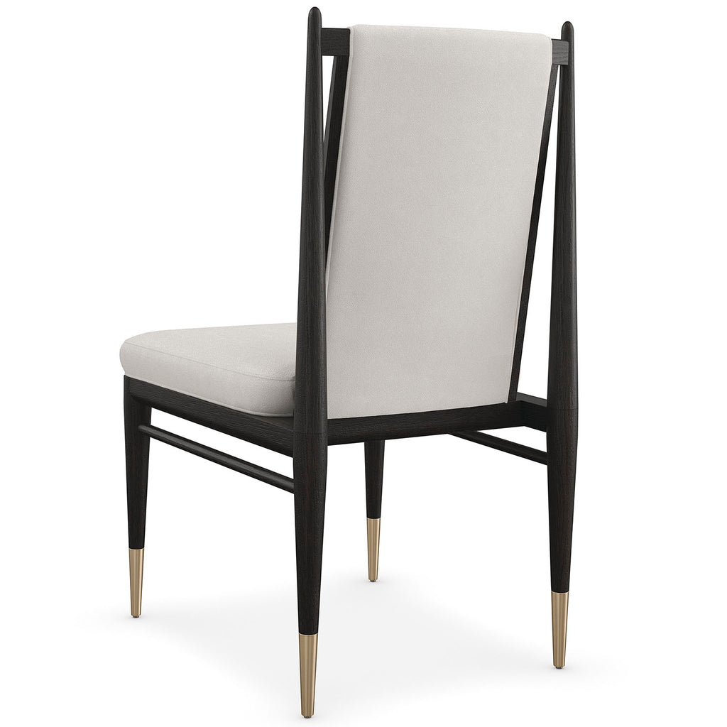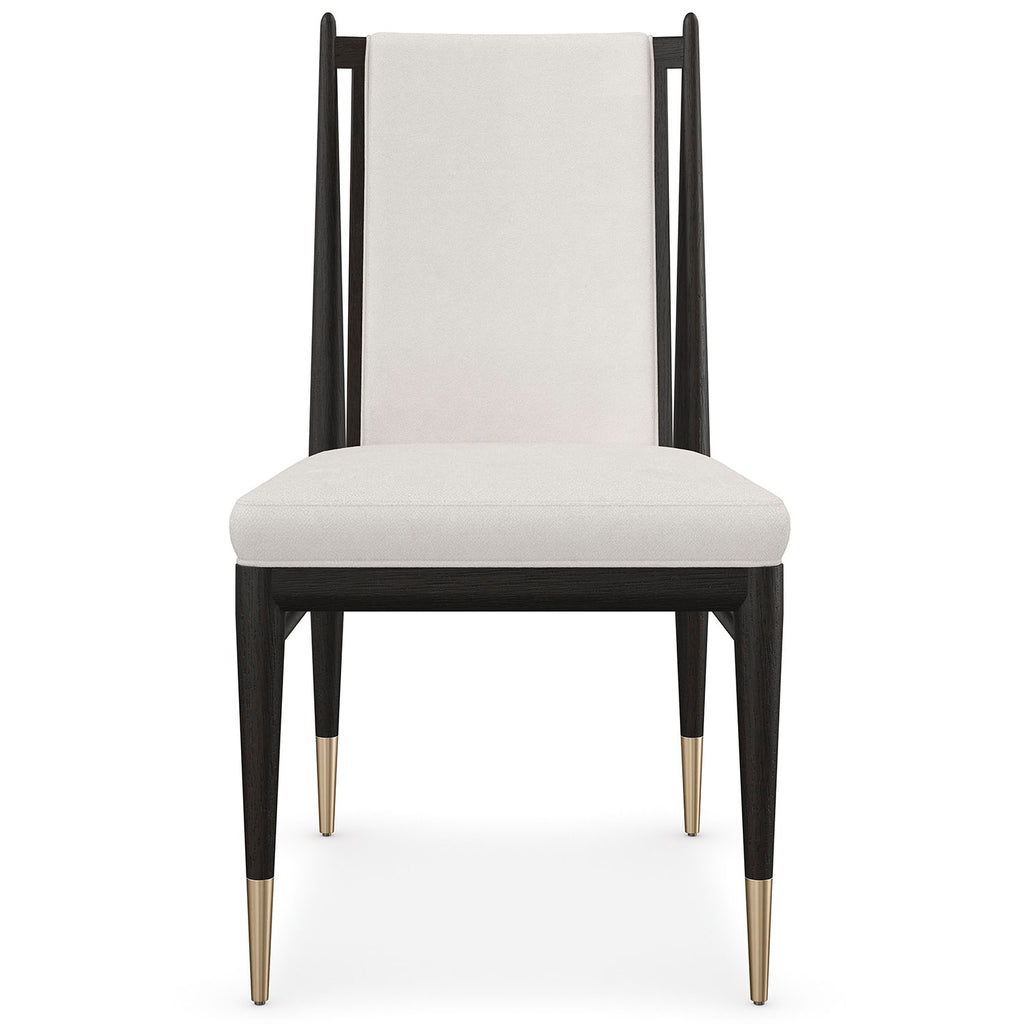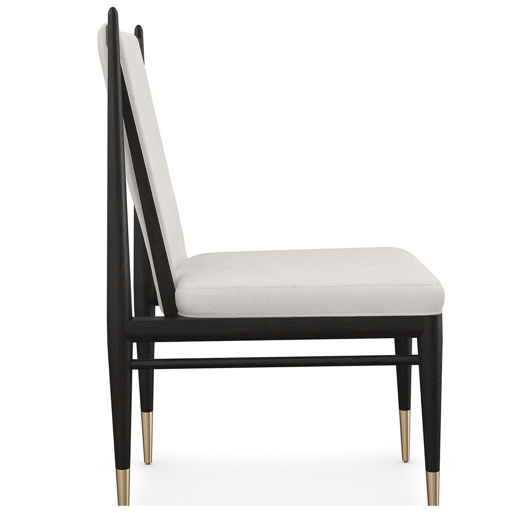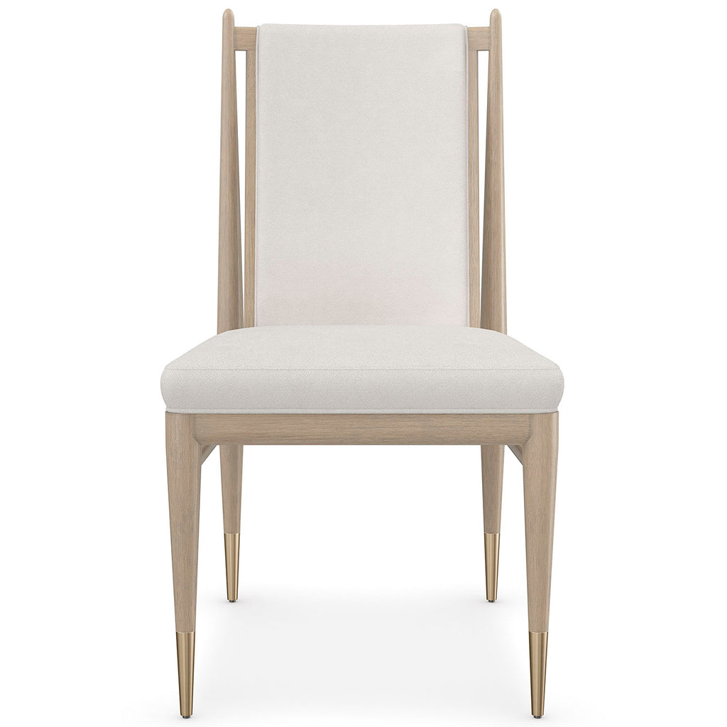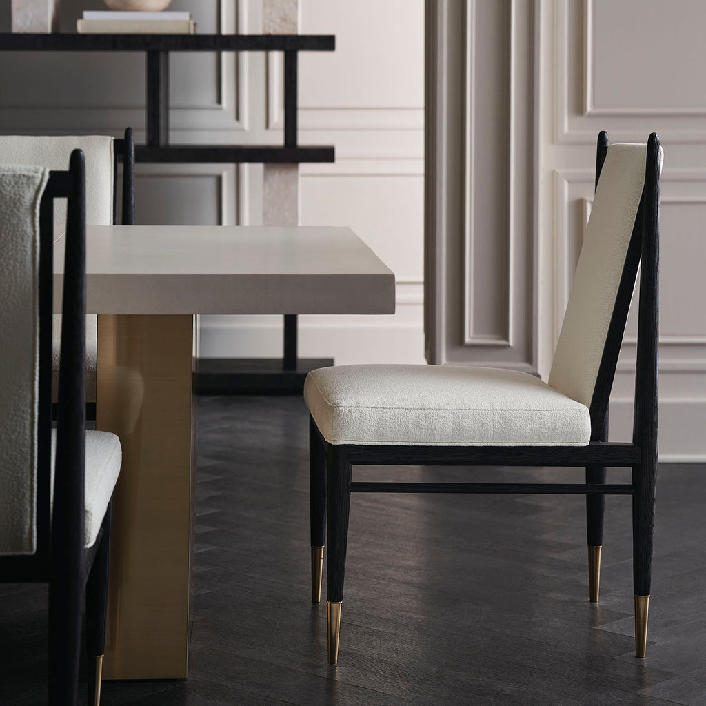 An elegant expression of materiality and form, the Caracole Unity dining chair is perfectly pitched for entertaining and the everyday. A clean-lined frame crafted in Sun Drenched open grain oak sets it apart from its dark counterpart. Dressed in an ivory boucle fabric and Lucent Bronze metal ferrules, its subtle contrast brings a fresh modern aesthetic to dining interiors.