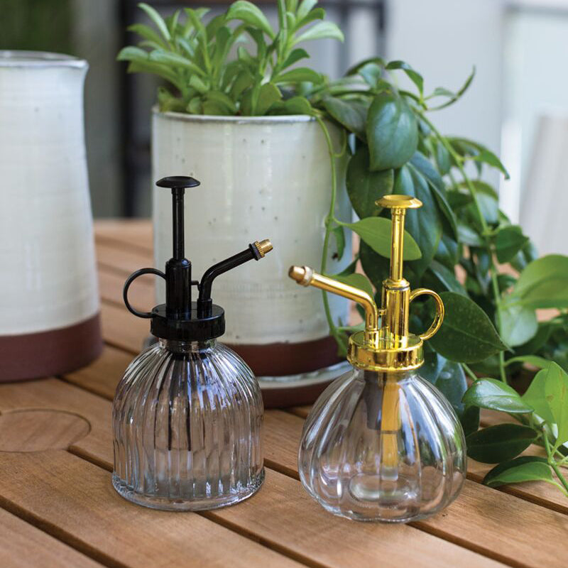 The Carlisle Plant Mister, crafted from glass and plastic, offers a beautiful way to keep all your plants freshly watered.