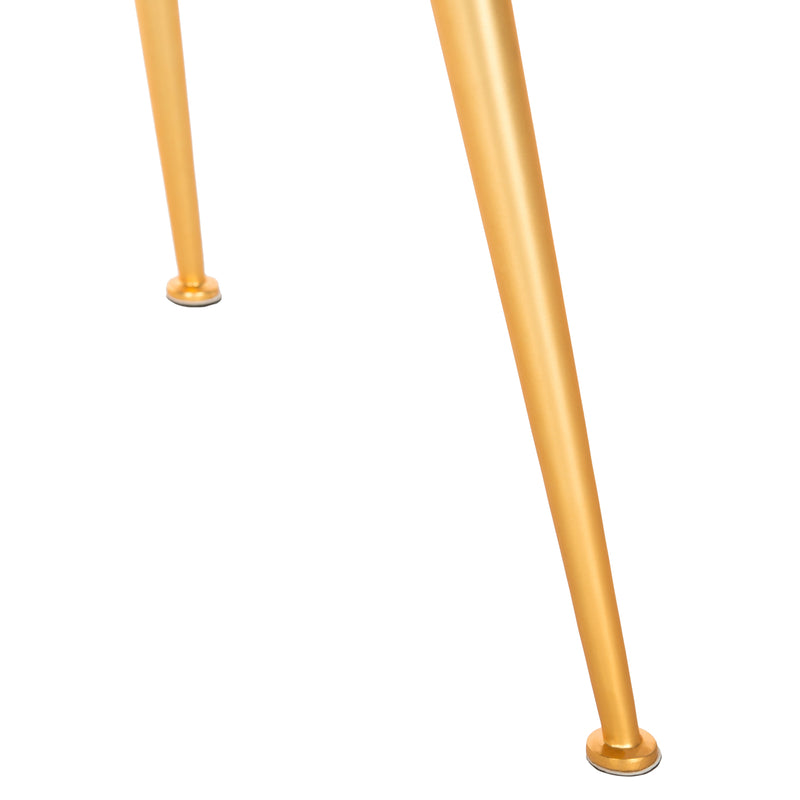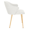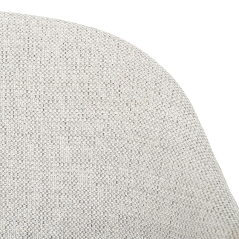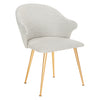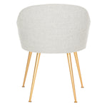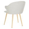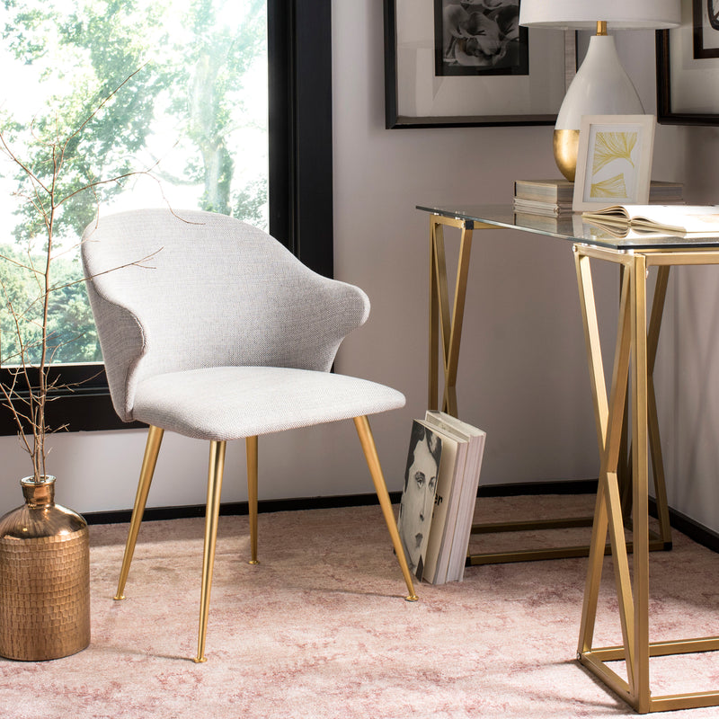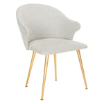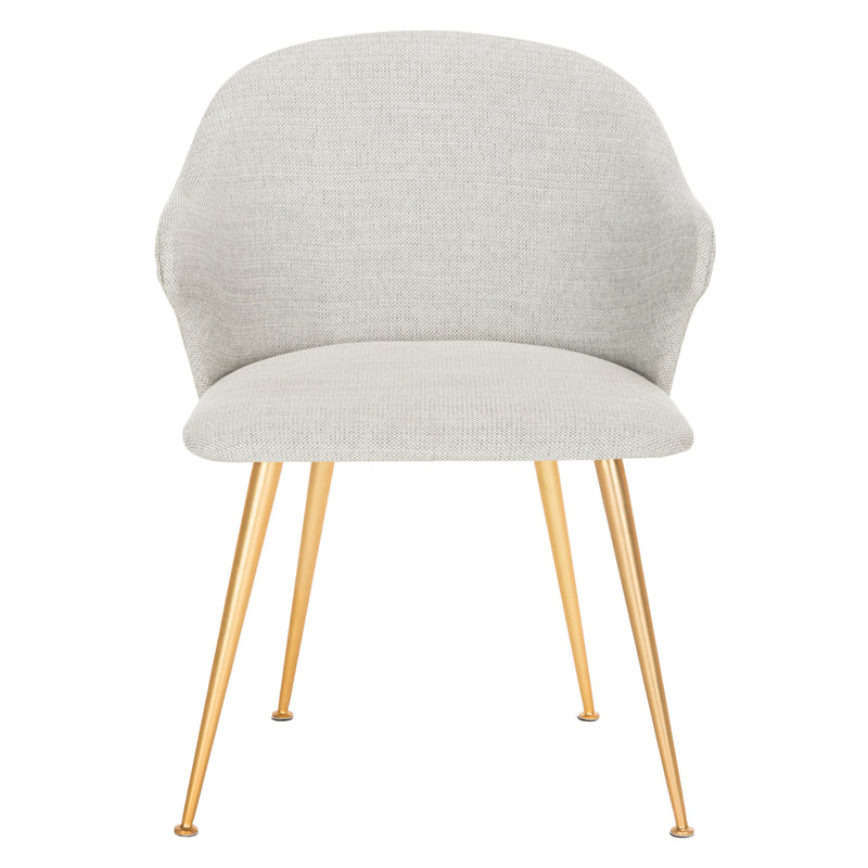 Inspired by vintage Italian style, this contemporary linen blend arm chair is a glamourous addition to any living room or dining room. Designed with a soft, generous seat, its soothing light gray upholstery complements its luxurious gold-finished capped legs.