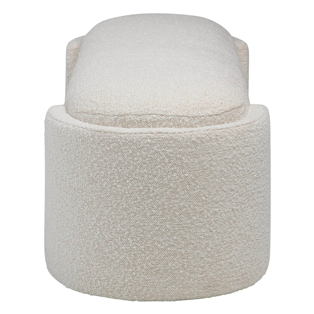 Add a contemporary touch to your seating arrangement with this lovely bench. Featuring an oval frame supported by a stunning off-white boucle upholstery for extra softness and comfort. Use this 56in x20in bench as a center table to display small tray and knick-knacks, as a place to prop your feet up after a long day, in the bedroom or entrance way for sitting.