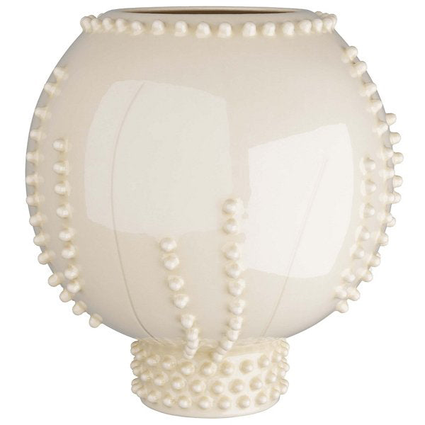 A ceramic vase in an ivory finish, dotted with soft, hand-applied beads for a unique design. Finish will vary.