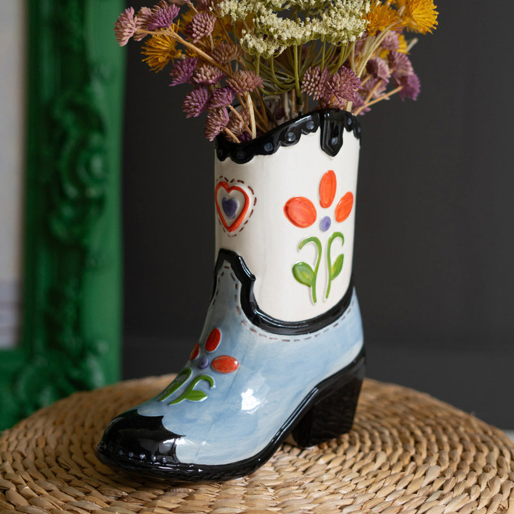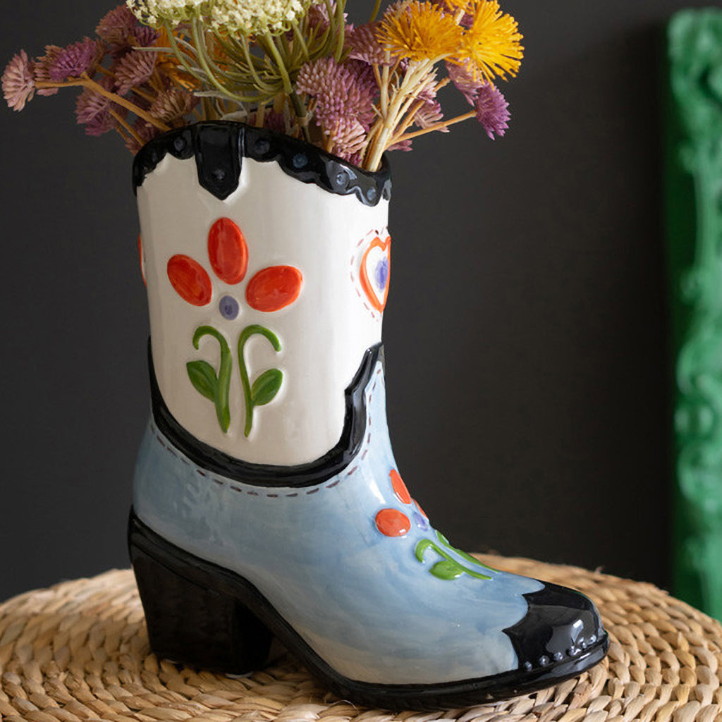 Cowboy Ceramic Boot Vase