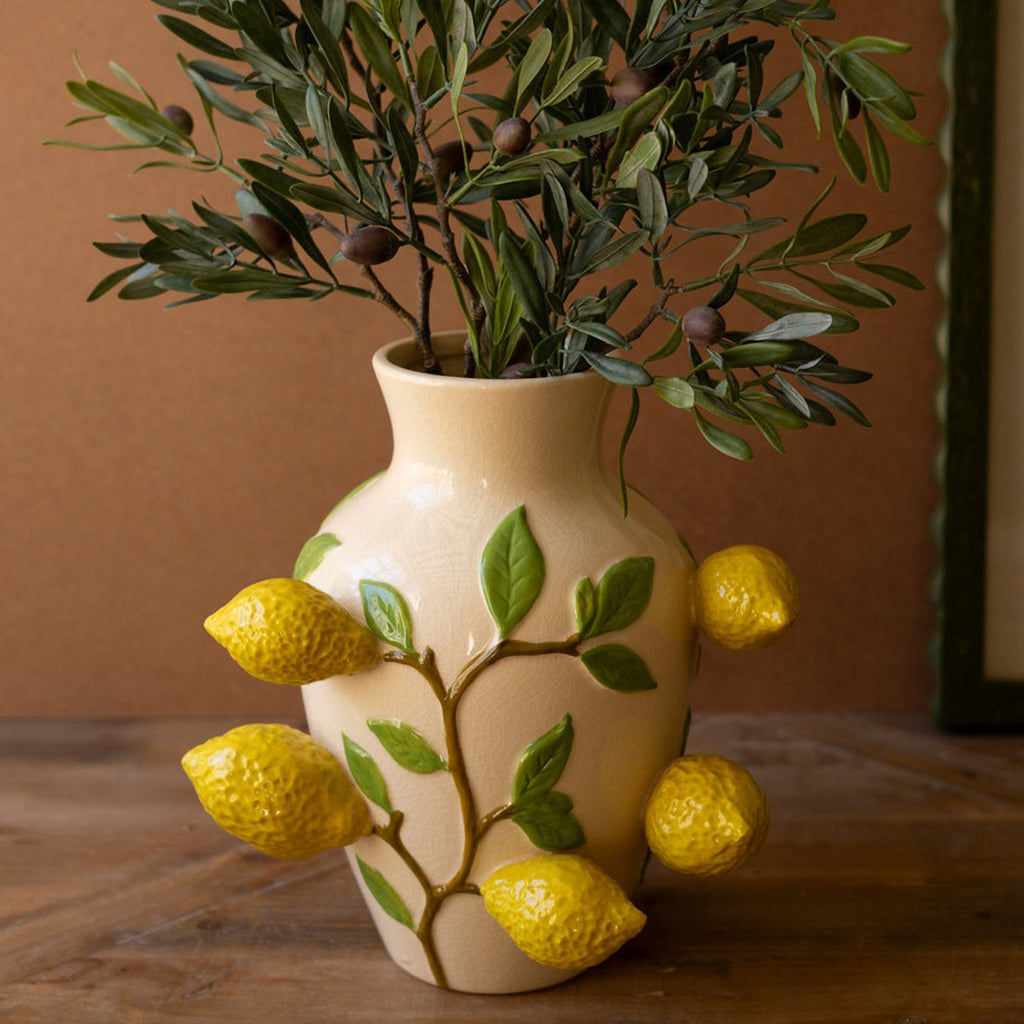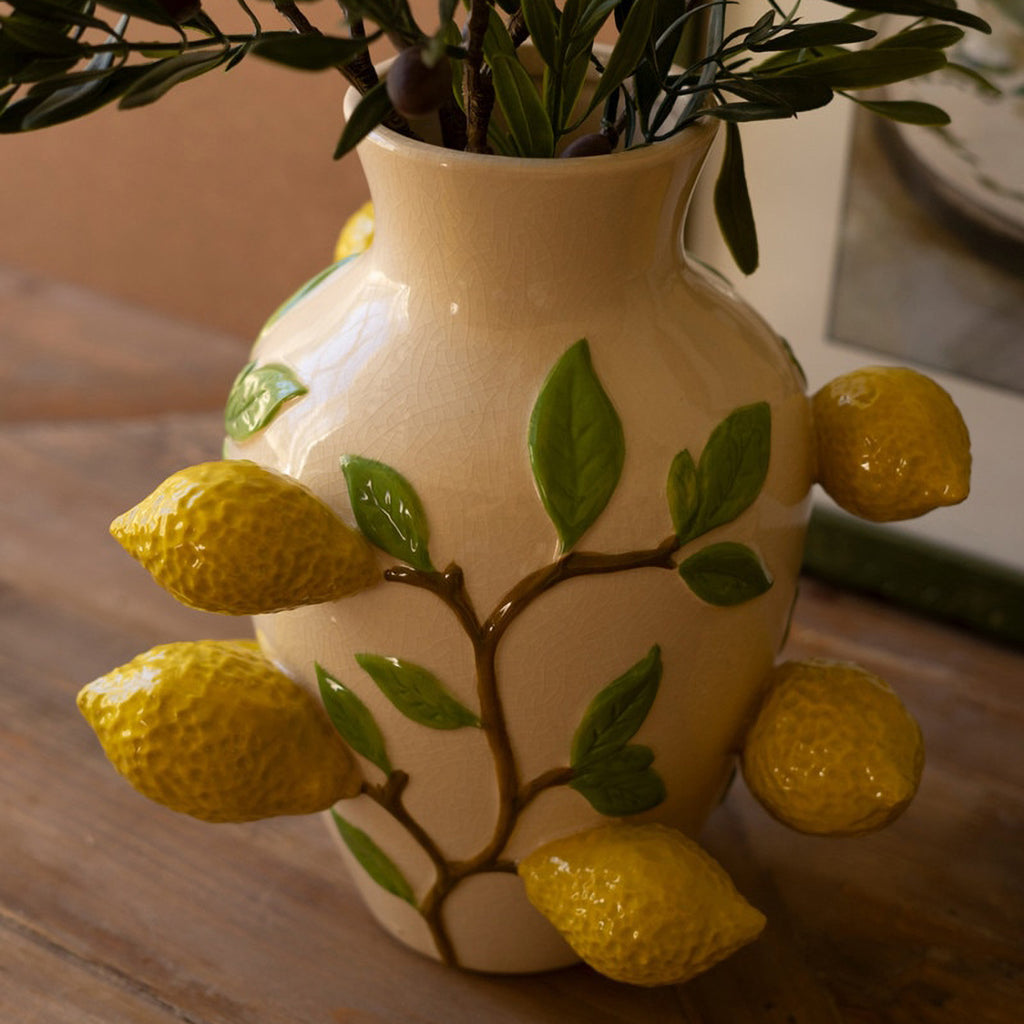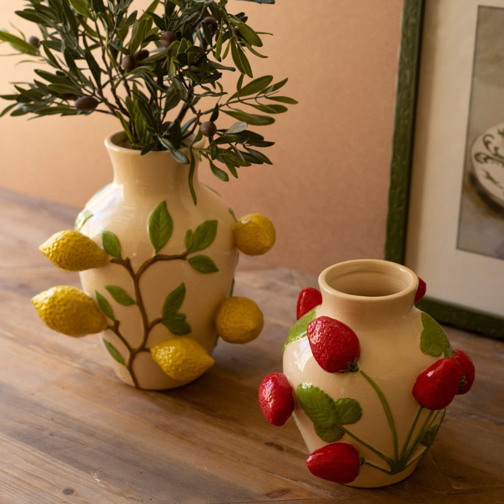 When life gives you lemons, pull out the lemon vase. Pair it with the smaller strawberries vase or let it stand out alone. Favorite fronds or empty, this vase brings joy.