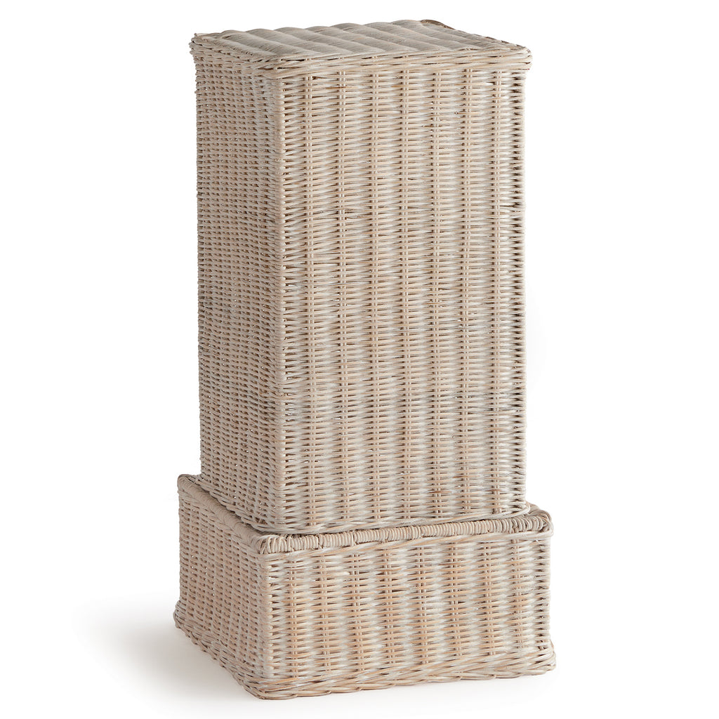 Double-walled and scaled to impress, this nearly 30 inch tall rattan woven pedestal is a real stunner. With beautiful varying natural tones in the rattan and reinforced by an iron framework, it is made to keep its original shape. An exclusive design you won't see anywhere else. Makes a beautiful entryway with a footed bowl or large objet on top... the possibilities are endless!