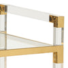 This Chelsea House bar cart entertains guests with modern elegance. Chic and sophisticated, this accent delights in a dining room or living room. Clear acrylic with clear glass shelves and polished brass finished iron edging.