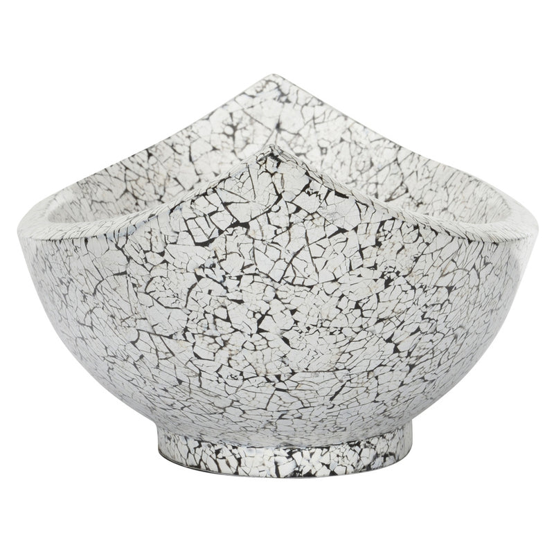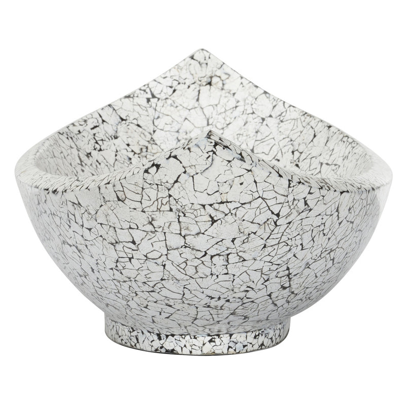 A unique and beautiful bowl with an organic foundation. Natural eggshells are up-cycled from the baking industry, carefully placed by hand then laminated for a modern black and white aesthetic.