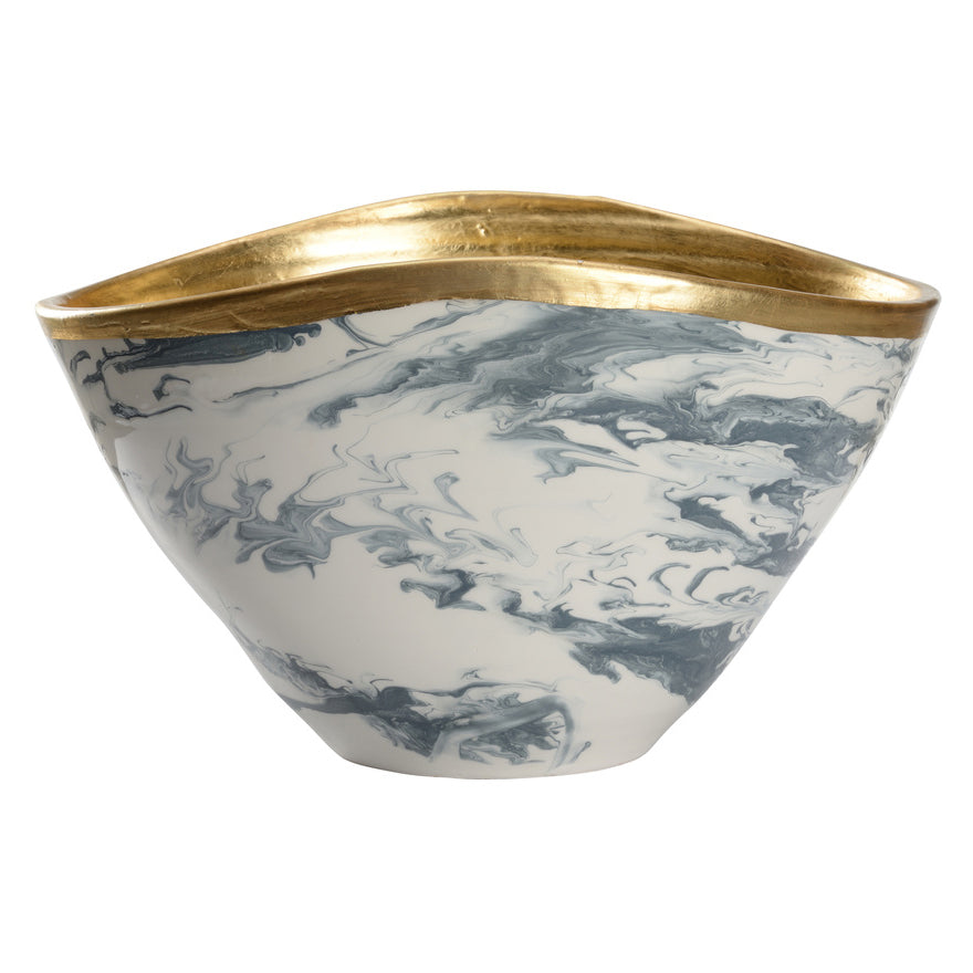 • Finish: Slate Blue and White Marbled Glaze/Gold Leaf