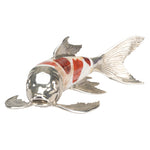 Made with brilliant colors form orange tiger penshell and cracked kabibi and finished with silver plate, the Koi Fish Figurine is a piece that people will not be able to take their eyes off of.