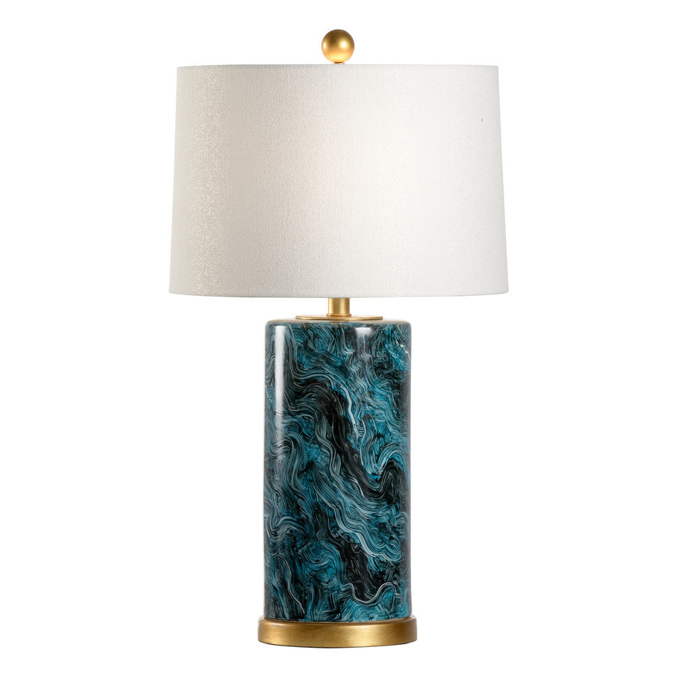 This table lamp from Chelsea House captivates in a variety of spaces. Embrace its inviting glow and unique texture in a bedroom or living room. The beautiful Chelsea House Malachite Cylinder table lamp features hand painted Malachite with a Gold Leaf mounting.