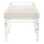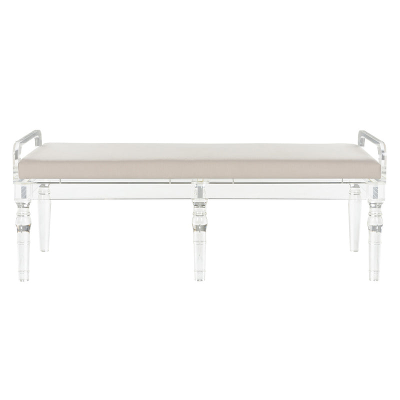Bring a modern touch with a classic feel. The Masters Acrylic Bench is upholstered in a neutral muslin cloth with a sophisticated shape in clear acrylic. Designed by Bill Cain.
