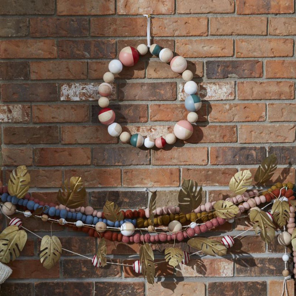 Add a natural, woodsy feel, along with a trendy, modern style, to your holiday (or everyday!) decor with the handmade, colorblocked Chroma Wreath, featuring abstract, multicolored tonal painted spheres made from pine wood in varying sizes.