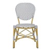 Escape to your favorite Parisian café with this French bistro stacking side chair. Its Navy & White or Grey & White pattern is ideal for the kitchen, porch or dining room. Designers love its authentic wicker style that adds just the right touch of je ne sais quoi.