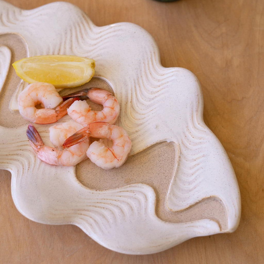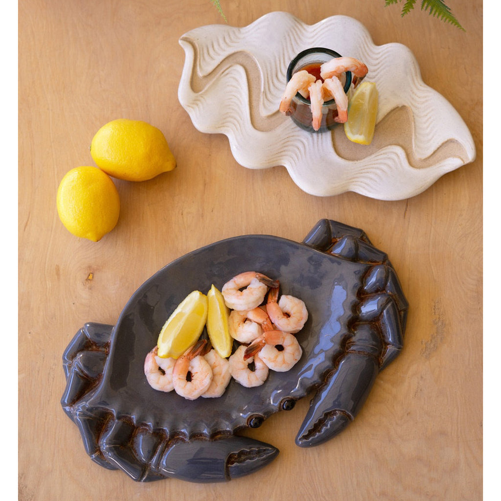 Grab a clam! This ceramic clam platter is a must for seaside decor. Serve up some surf or display this platter in your coastal cabin.